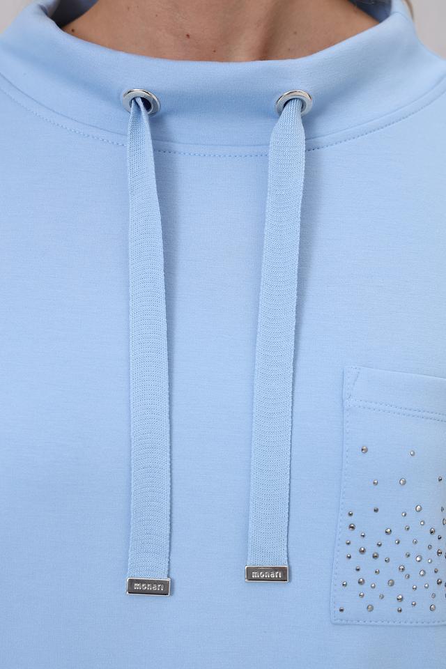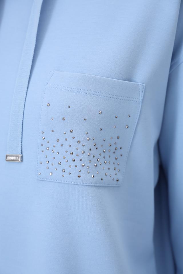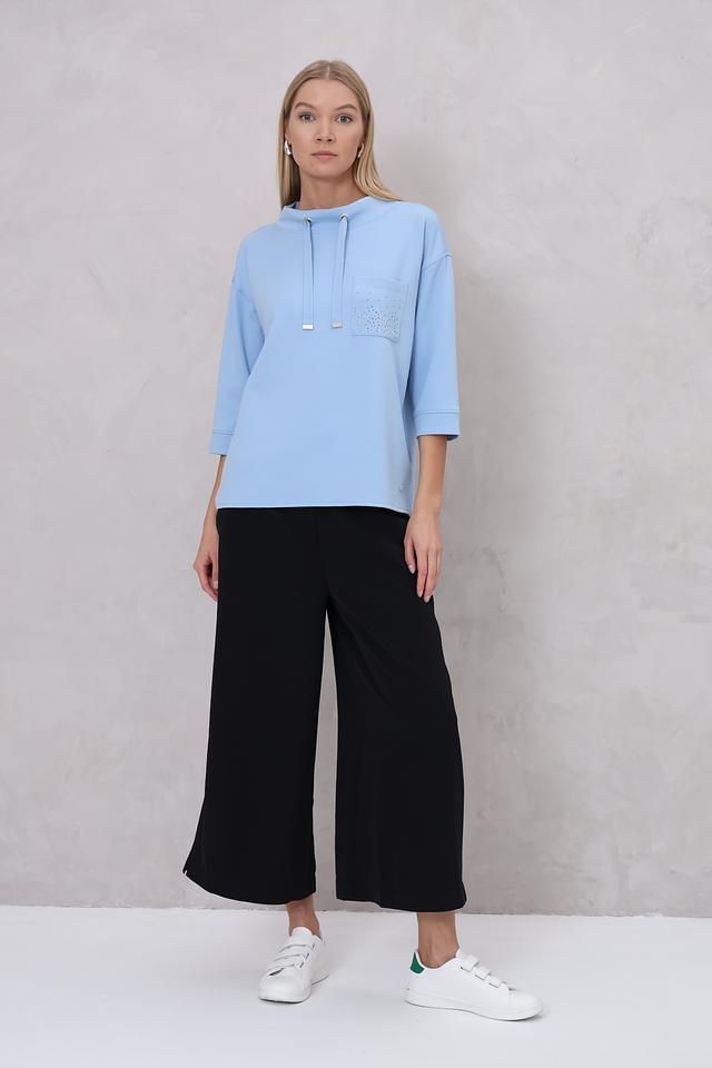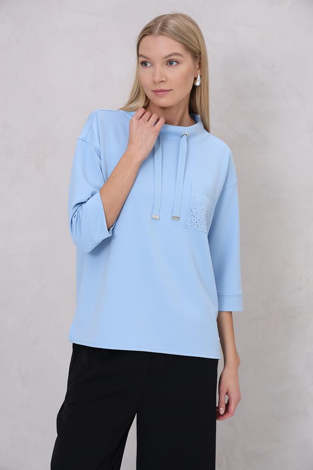 Голубой пуловер от Monari – это стильная и комфортная модель с рукавами 3/4 и декоративным карманом, украшенным стразами. Удобный крой и мягкая ткань делают этот пуловер идеальным выбором для повседневного гардероба. Состав: полиэстер 55%, вискоза 38%, эластан 7%