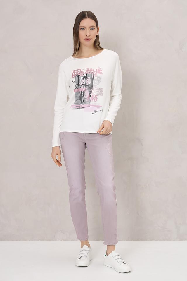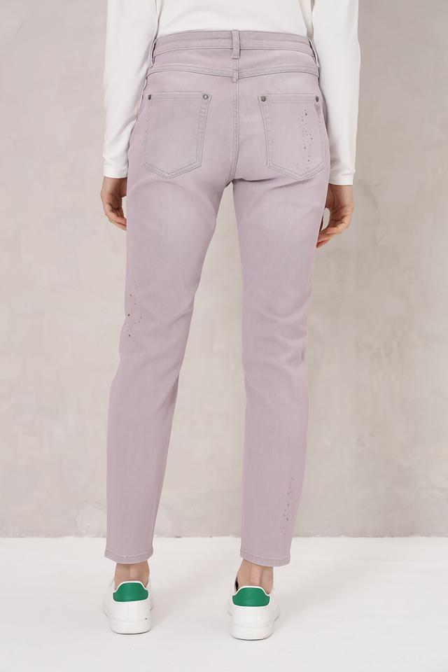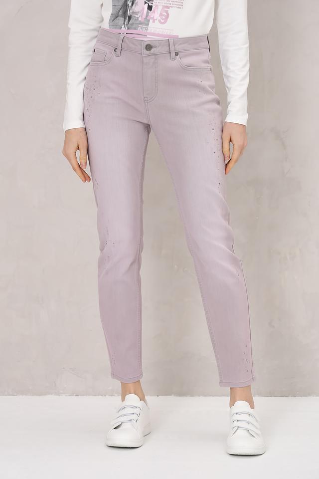 Светло-лиловые джинсы Monari с эффектом помятости и декоративной отделкой в виде брызг. Модель выполнена из хлопка с добавлением полиэстера и эластана для комфорта и сохранения формы. Состав: хлопок 88%, полиэстер 8%, эластан 4%