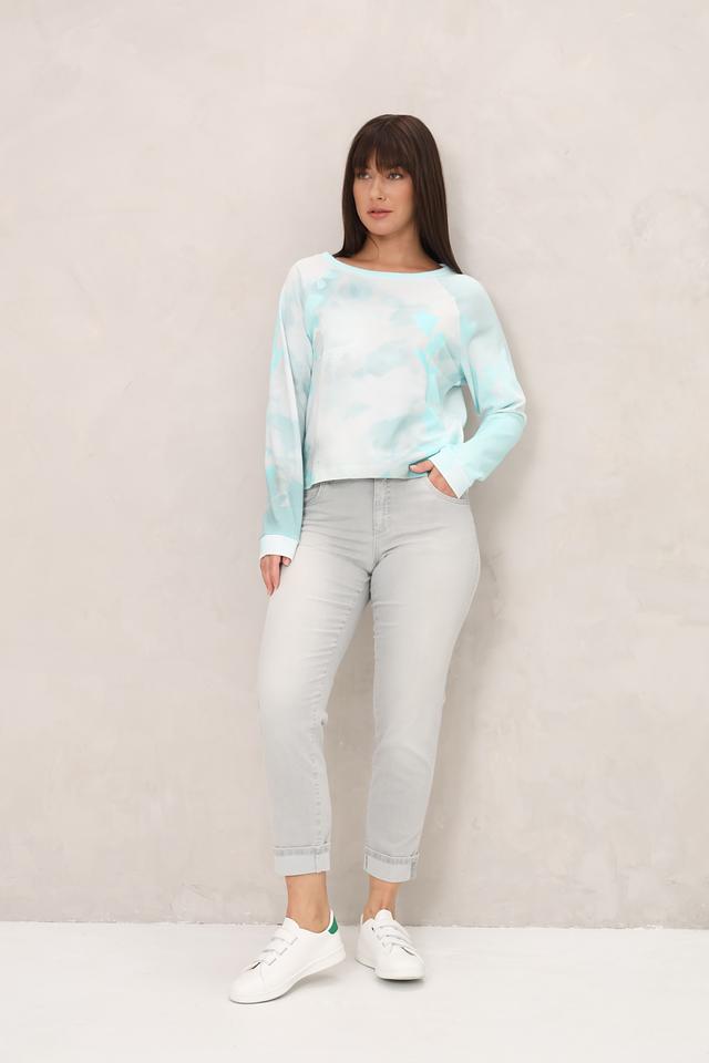 Женский пуловер Monari голубого цвета с оригинальным принтом tie-dye. Изготовлен из мягкого хлопка, обеспечивающего комфорт в носке. Стильный и удобный выбор для повседневного образа. Состав: хлопок 100%