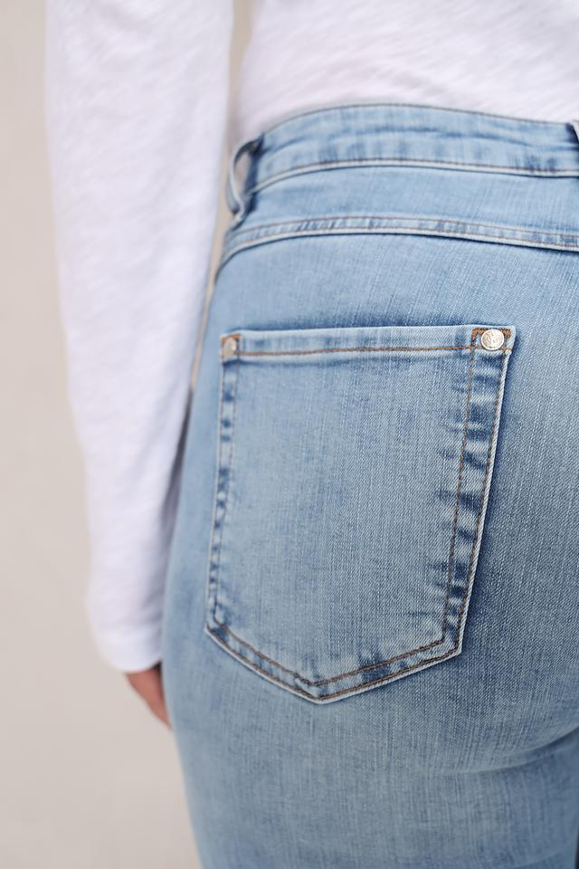 Женские джинсы Monari голубого цвета с эффектом потертостей и необработанным краем. Модель выполнена из хлопка с добавлением полиэстера и эластана для комфорта и лучшей посадки. Состав: хлопок 90%, полиэстер 7%, эластан 3%