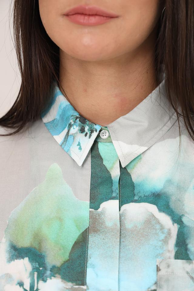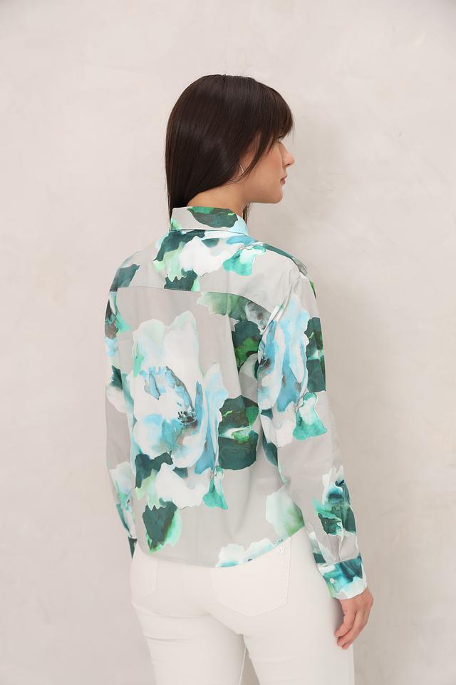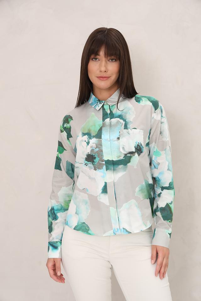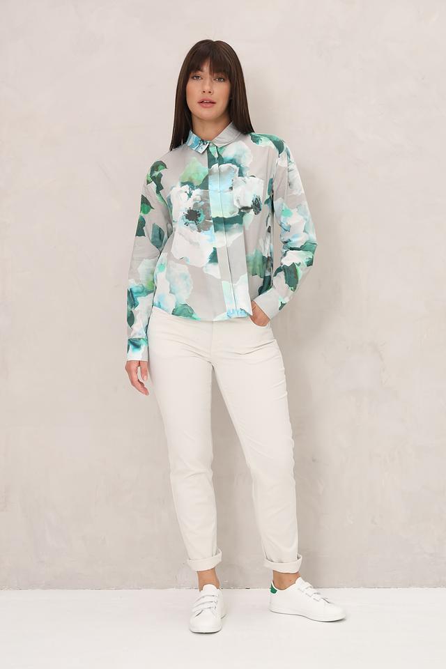 Блуза Monari светло-зелёного цвета с ярким цветочным принтом станет стильным дополнением вашего гардероба. Модель выполнена из лёгкой ткани и имеет классический крой с длинными рукавами и воротником. Состав: хлопок 100%