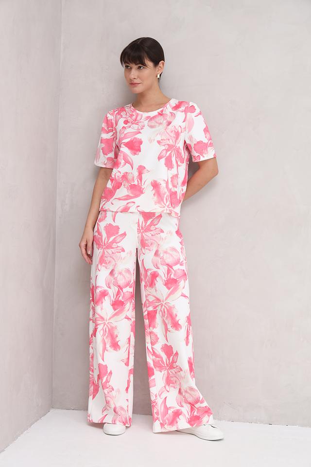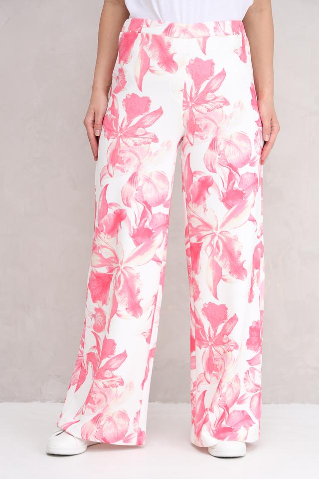 Эти брюки от Monari – идеальный выбор для создания яркого и женственного образа. Брюки выполнены в нежном розовом цвете и украшены крупным цветочным принтом, который придает им особую привлекательность.
