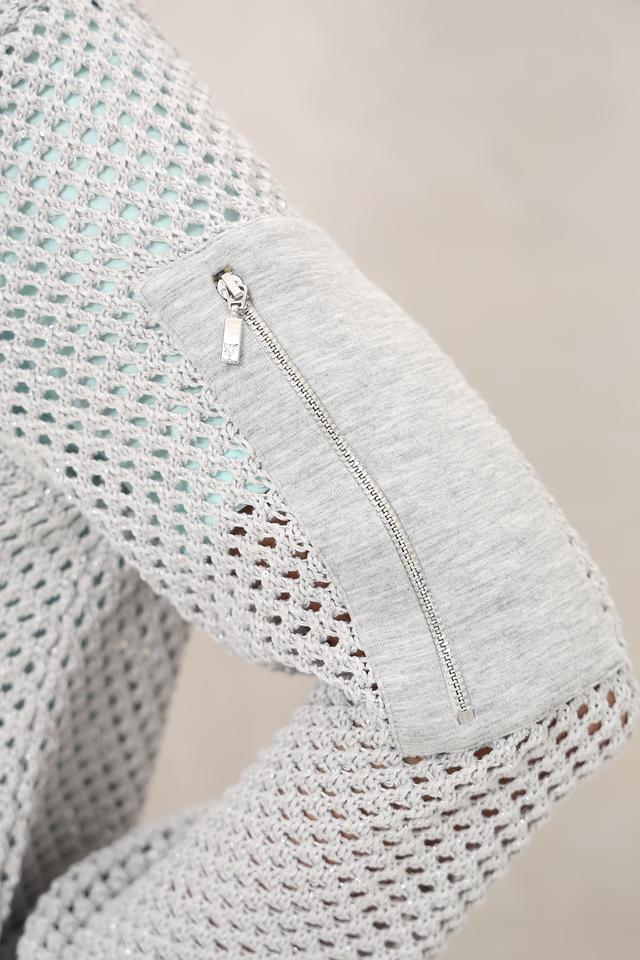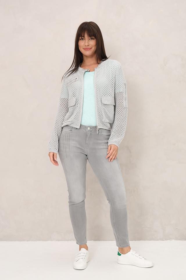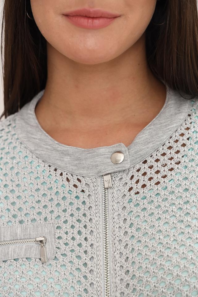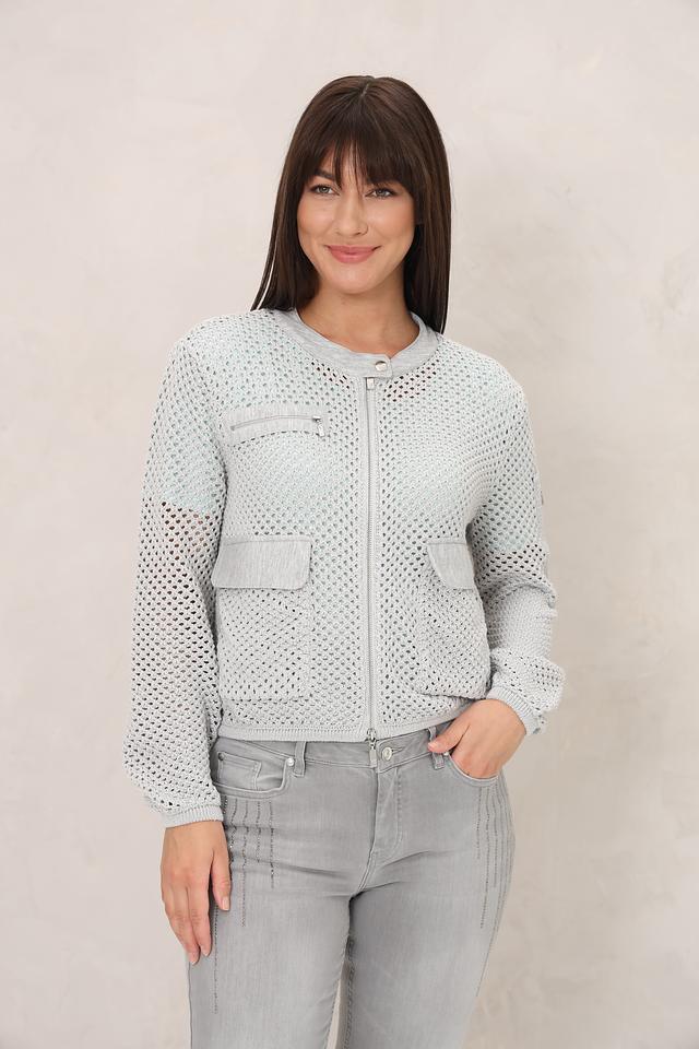Стильный жакет Monari светло-серого цвета с ажурной текстурой и застежкой на молнию. Модель дополнена накладными карманами и имеет короткий крой, идеально подходящий для создания модных образов. Состав: хлопок 60%, полиэстер 30%, метализ.полиэстер 10%