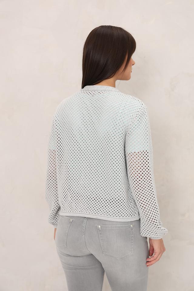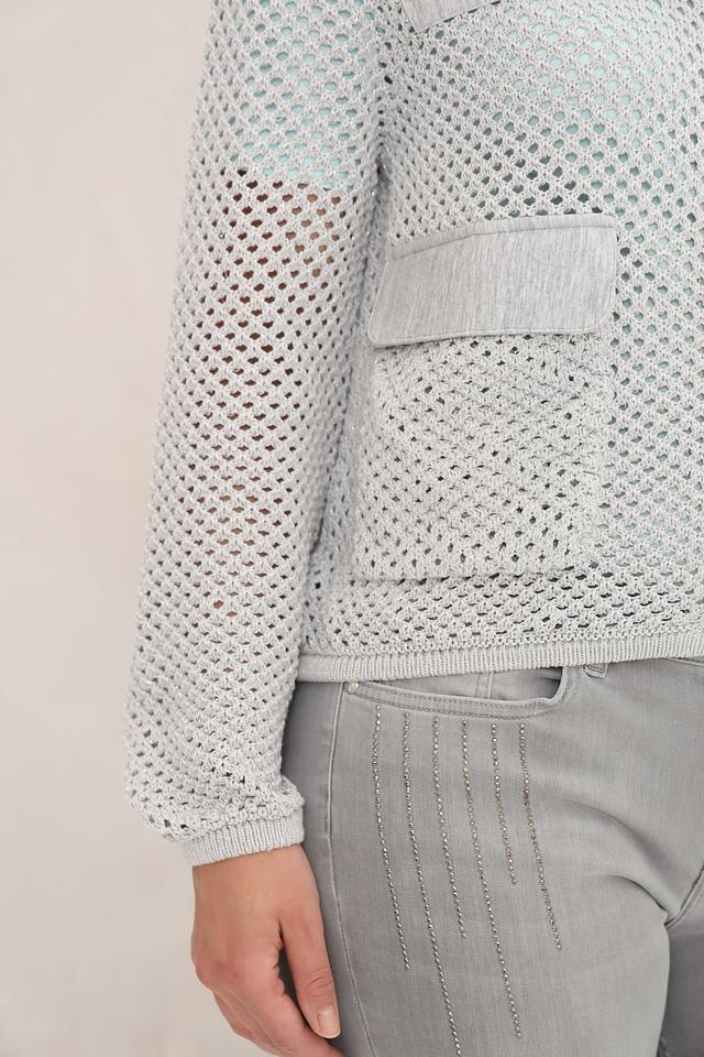 Этот жакет от Monari станет ярким акцентом в вашем гардеробе. Выполненный в светло-сером цвете, он отличается оригинальной ажурной текстурой, которая придает ему легкость и воздушность.