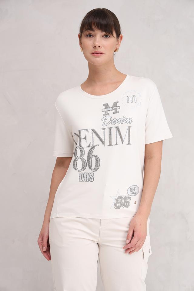Белая футболка Monari с ярким принтом "Denim 86". Модель выполнена из мягкого трикотажа с добавлением вискозы и модала, обеспечивающего комфорт в носке. Футболка станет стильным дополнением к вашему образу. Состав: вискоза 45%, модал 45%, эластан 10%