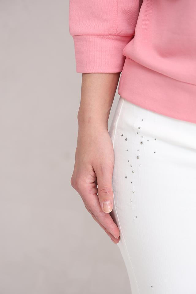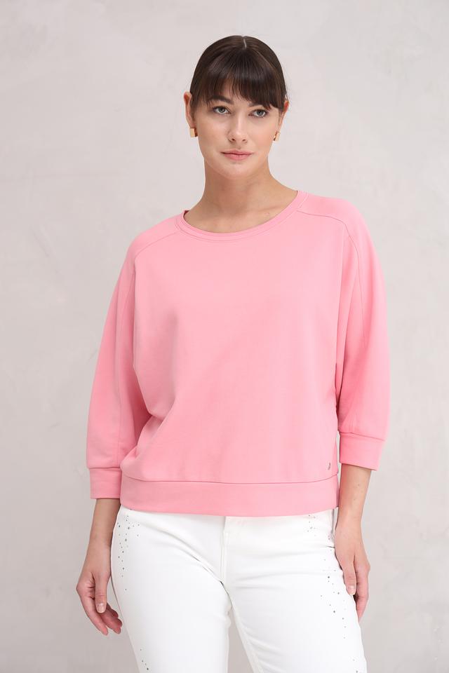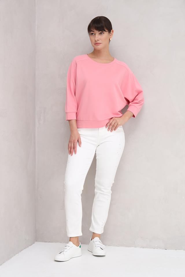 Этот пуловер от Monari выполнен в нежном розовом цвете и станет прекрасным дополнением к вашему гардеробу. Модель имеет свободный крой, который обеспечивает комфорт в носке, а рукав 3/4 делает его универсальным для любого времени года.