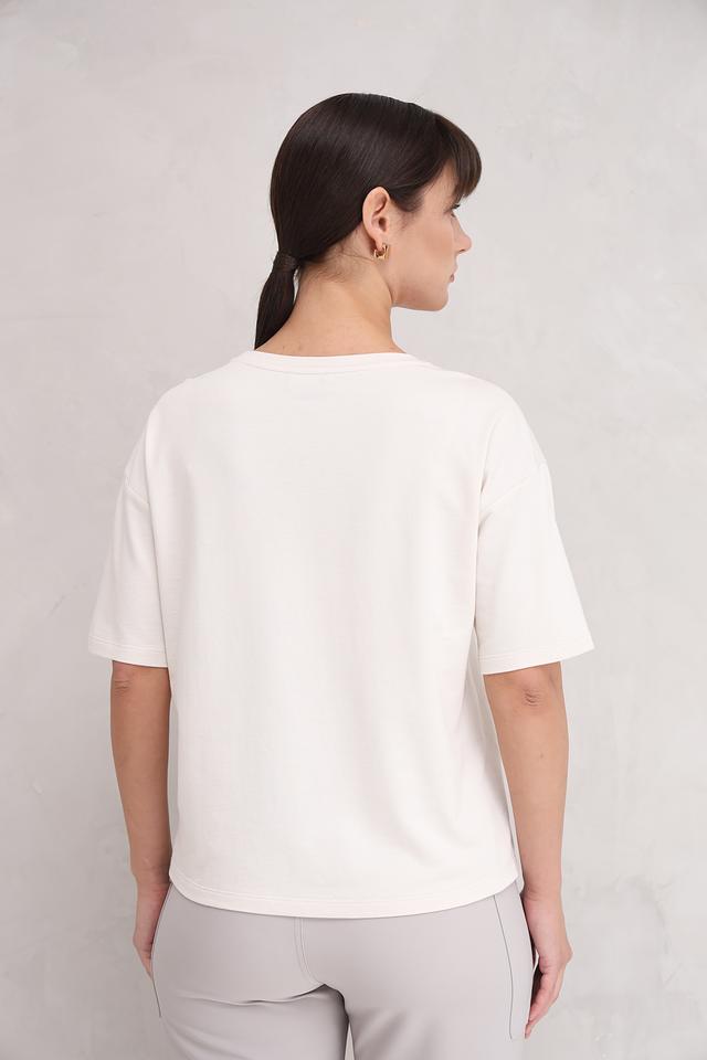Модель имеет свободный крой, который обеспечивает комфорт в носке. Футболка изготовлена из высококачественного хлопка (50%) и модала (50%), что делает ее приятной к телу и износостойкой.