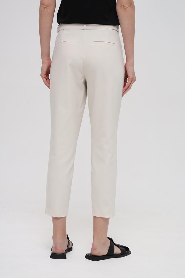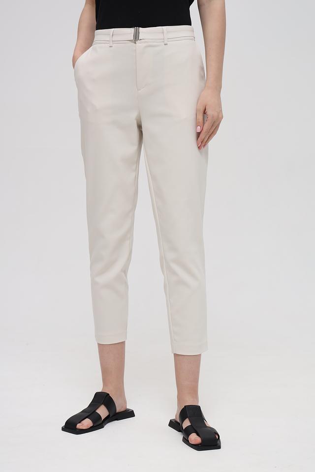 Брюки имеют прямой крой и укороченную длину, что делает их актуальными и современными. Пояс с металлической пряжкой добавляет изысканности и подчеркивает талию. Качество материалов гарантирует комфорт и долговечность изделия.