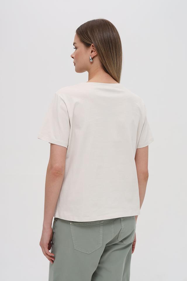 Модель имеет классический крой с короткими рукавами и круглым вырезом горловины, обеспечивающим комфортную посадку по фигуре. Футболка изготовлена из высококачественного 100% хлопка, что гарантирует мягкость, воздухопроницаемость и приятные тактильные ощущения.
