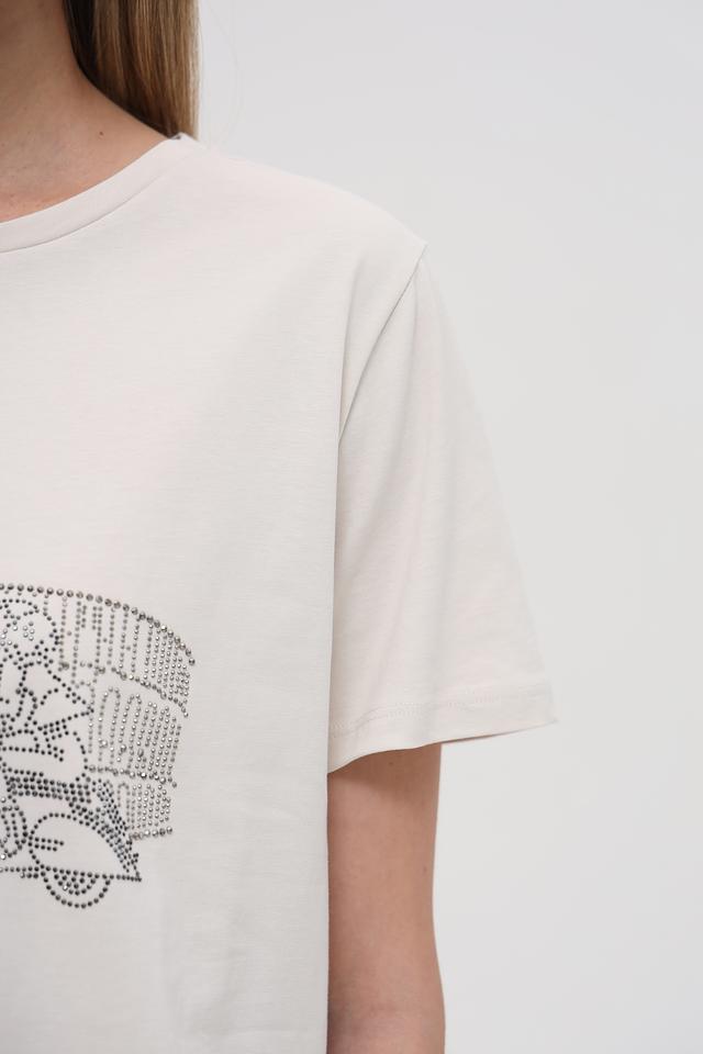 Эта футболка от Monari станет ярким акцентом в вашем гардеробе. Выполнена в белом цвете и украшена детализированным принтом, изображающим Колизей и мотоцикл, что придает ей уникальный и запоминающийся вид.
