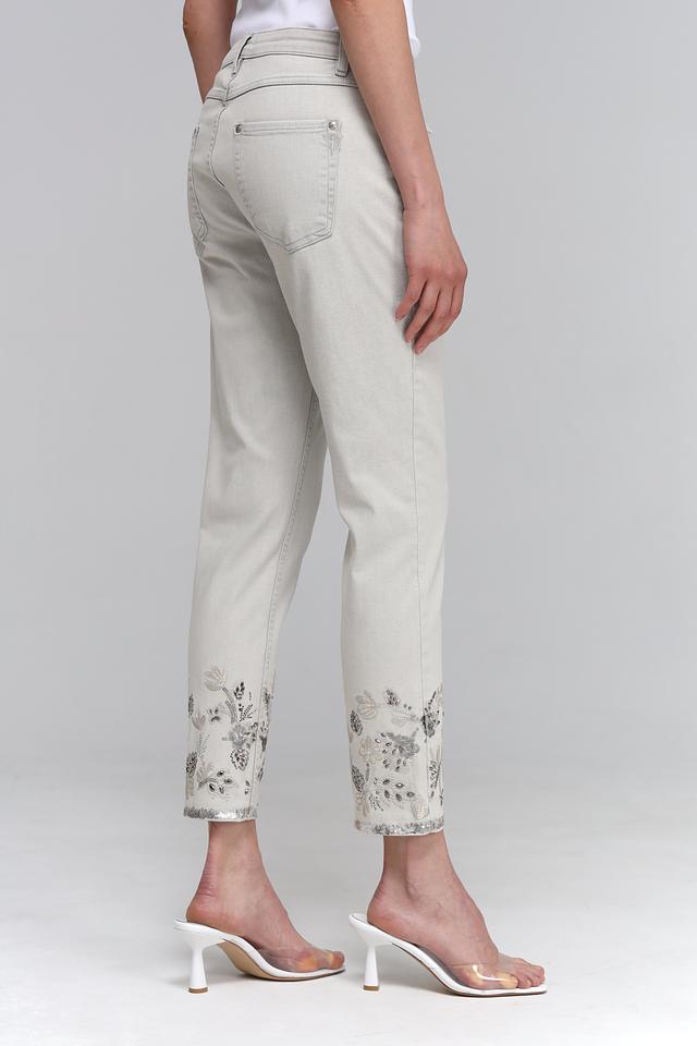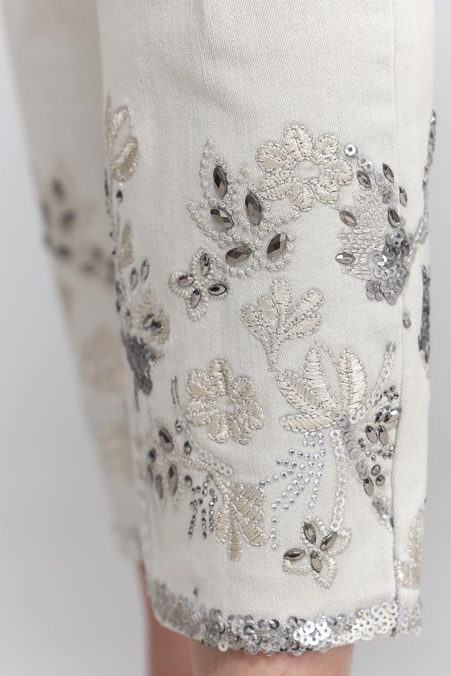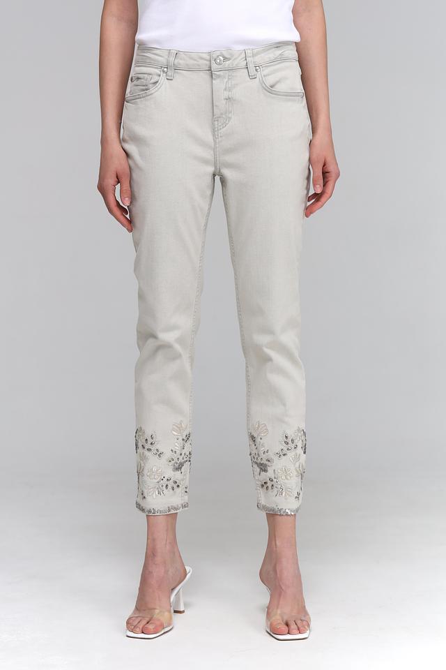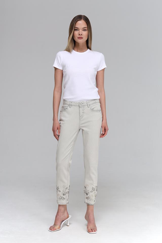 Эти брюки от Monari станут прекрасным дополнением к вашему гардеробу. Они выполнены в нежном бежевом цвете и украшены изысканной цветочной вышивкой на щиколотке, что придает им особый шарм.