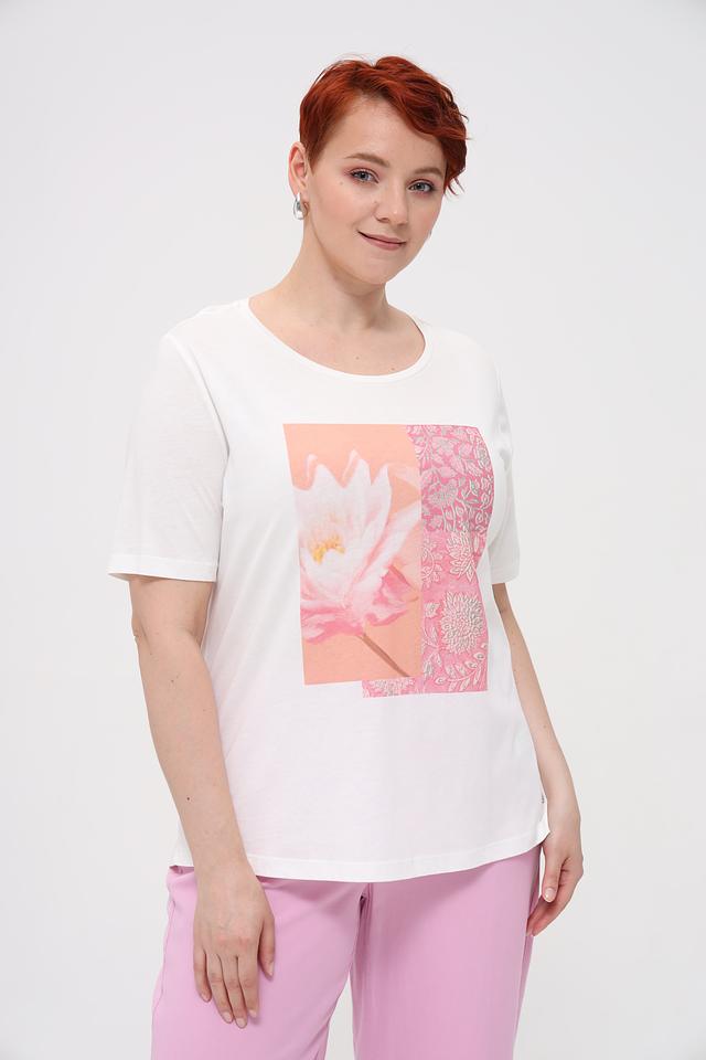 Белая футболка Monari с ярким цветочным принтом станет отличным дополнением к вашему гардеробу. Модель выполнена из мягкого хлопка с модалом, обеспечивающим комфорт в носке. Стильный принт добавит образу свежести и легкости. Состав: хлопок 50%, модал 50%