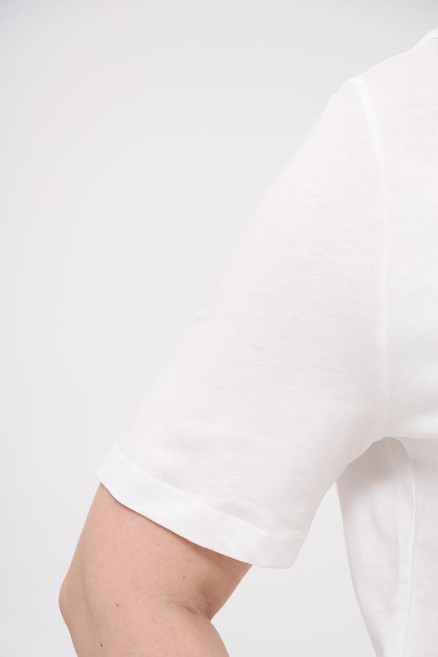 Модель имеет прямой крой, который обеспечивает свободу движений и комфортную посадку по фигуре. Короткие рукава делают футболку подходящей для теплой погоды. Вырез горловины – классический круглый.