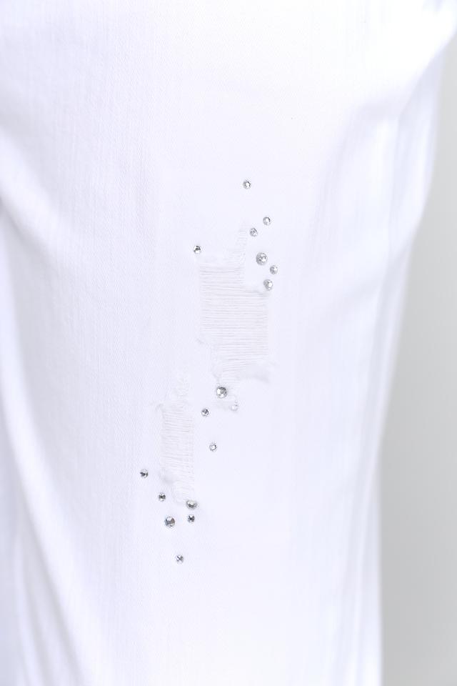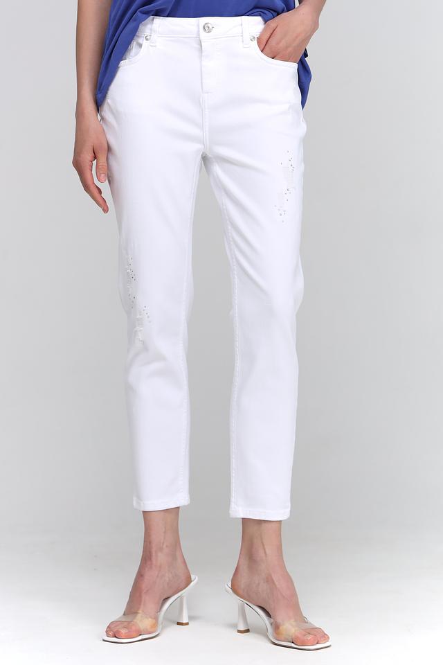 Белые джинсы Monari с эффектом потертостей — стильное и комфортное решение для создания повседневных образов. Модель выполнена из качественного хлопка с добавлением эластана для оптимальной посадки и свободы движений. Состав: хлопок 98%, эластан 2%