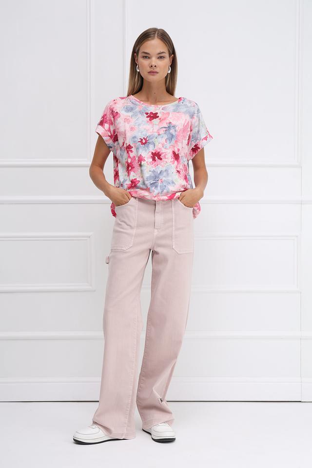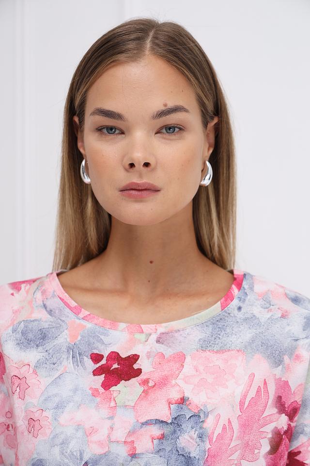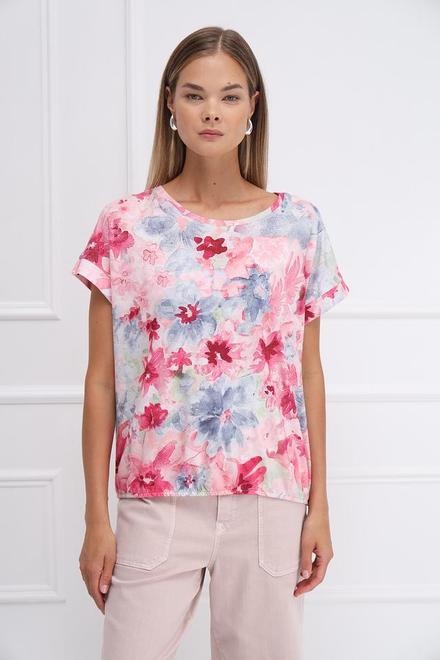 Женская футболка Monari нежно-розового цвета с ярким цветочным принтом станет отличным дополнением к вашему гардеробу. Модель выполнена из мягкого и приятного к телу сочетания хлопка и модала, обеспечивая комфорт в течение всего дня. Состав: хлопок 50%, модал 50%