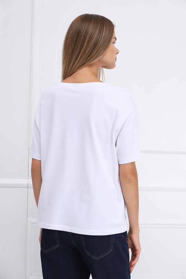 Модель имеет свободный крой, короткие рукава и круглый вырез горловины. Блуза выполнена из приятной к телу ткани, сочетающей в себе 50% хлопка и 50% модала, что обеспечивает комфорт и воздухопроницаемость.