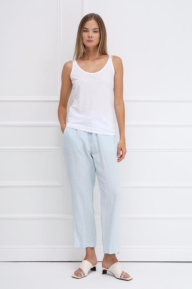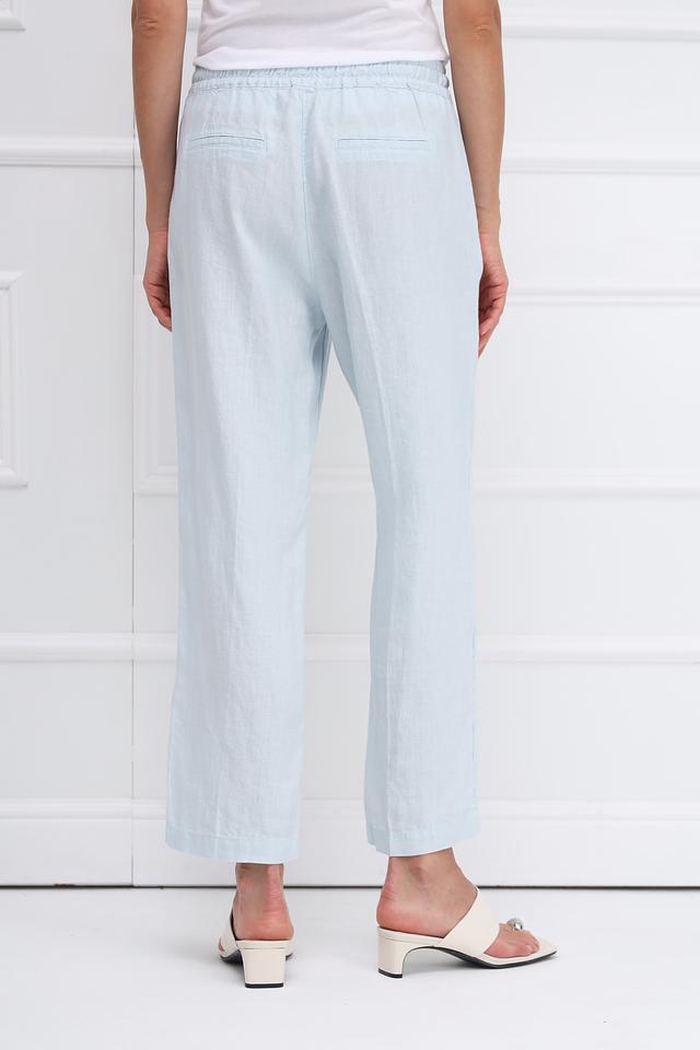 Нежный голубой цвет брюк легко сочетается с различными элементами одежды, создавая свежие и стильные образы. Идеально подойдут для повседневной носки, прогулок по городу или отдыха на природе. Состав: 100% лен.