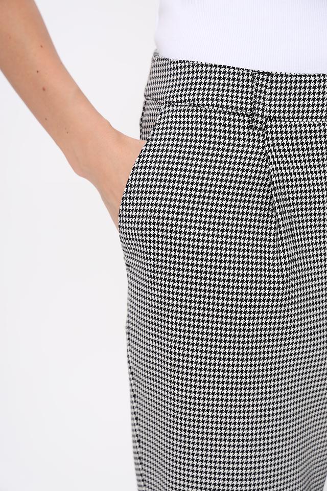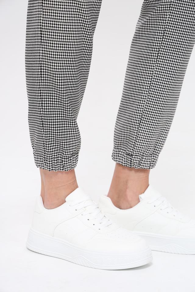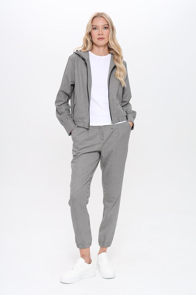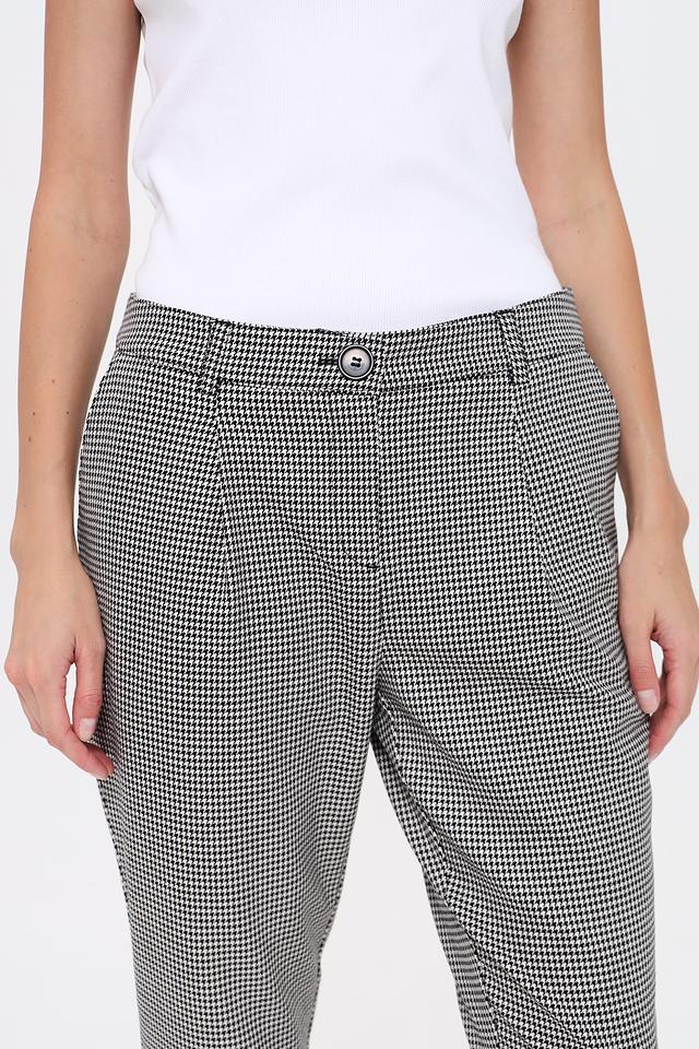 Эти брюки от Monari станут отличным дополнением к вашему гардеробу. Классический чёрно-белый клетчатый принт делает их универсальными и подходящими для различных образов.