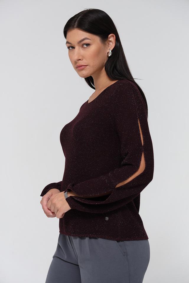 Бордовый пуловер Monari – стильная модель из смесового трикотажа с вырезами на рукавах. Вырез горловины округлый, рукава длинные, слегка расклешенные к низу. Пуловер станет отличным дополнением к вашему образу. Состав: вискоза 25%, полиакрил 23%, хлопок 23%, полиэстер 22%, метализ.полиэстер 7%