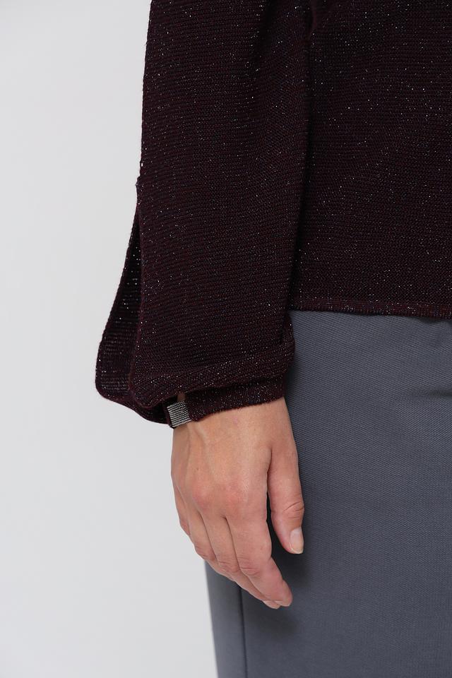 Благодаря своему бордовому цвету и оригинальному дизайну, этот пуловер станет ярким акцентом в вашем гардеробе. Он прекрасно сочетается с брюками, юбками и джинсами, позволяя создавать разнообразные образы.