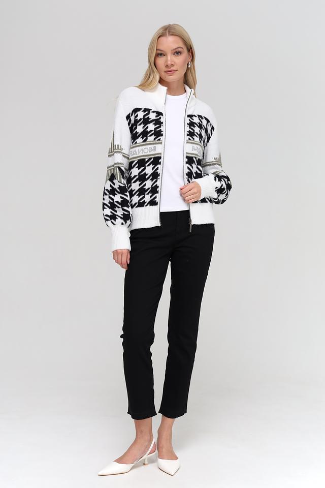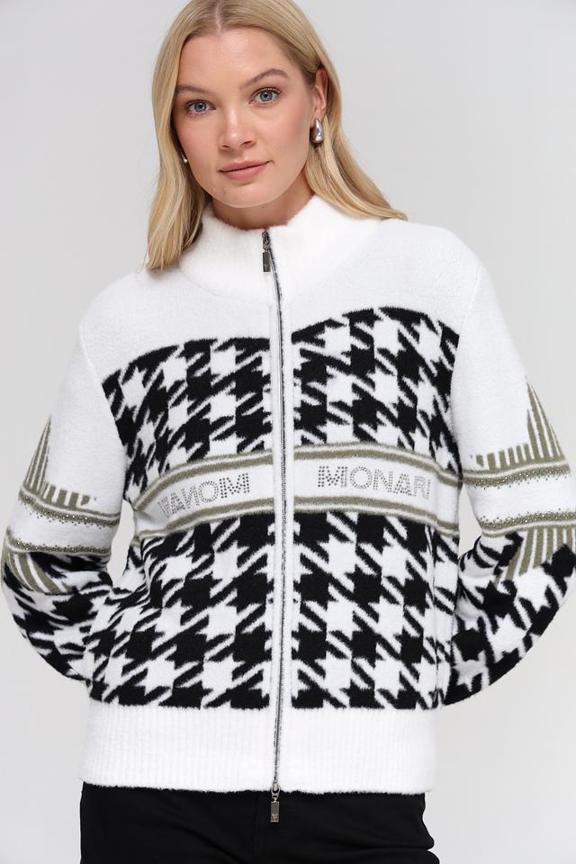 Белый жакет Monari с узором "гусиная лапка" – стильная и комфортная модель на молнии. Жакет имеет оригинальный декор в виде логотипа бренда и декоративной отделки. Состав: полиамид 100%