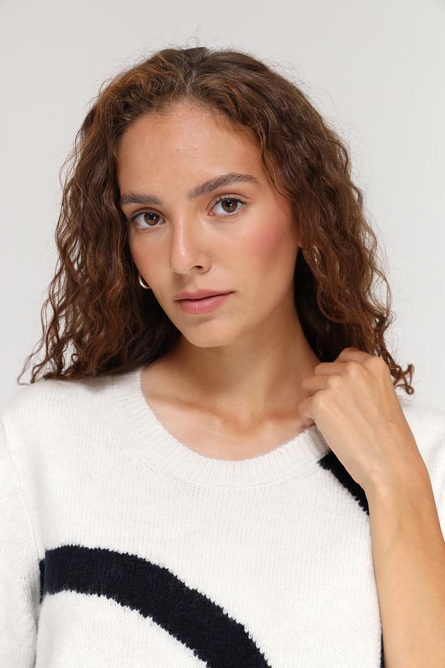 Белый пуловер Monari с оригинальным чёрным принтом – стильное и комфортное решение для создания модных образов. Короткий рукав и свободный крой обеспечивают удобство и свободу движений. Состав: полиакрил 48%, вискоза 43%, полиэстер 9%