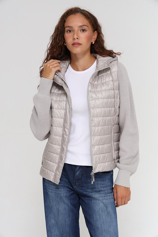 Стильная куртка Monari серого цвета с комбинированным дизайном. Модель выполнена из стеганого полиамида и дополнена рукавами из трикотажа, что обеспечивает комфорт и современный вид. Состав: Состав_2 полиамид 100%, полиакрил 48%, шерсть 48%, эластан 4%