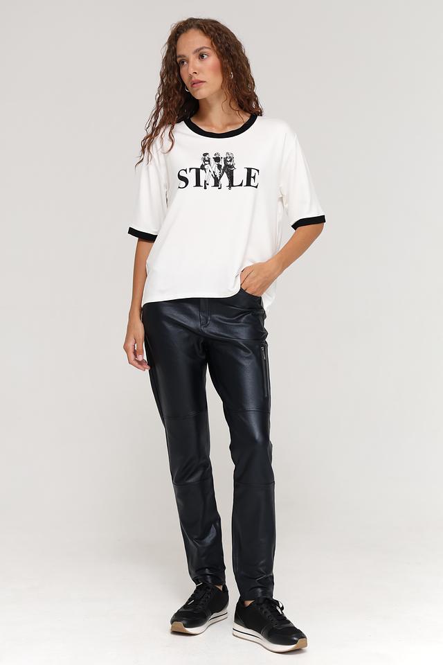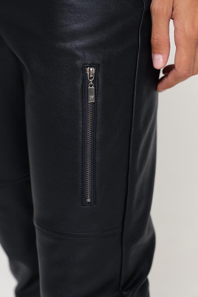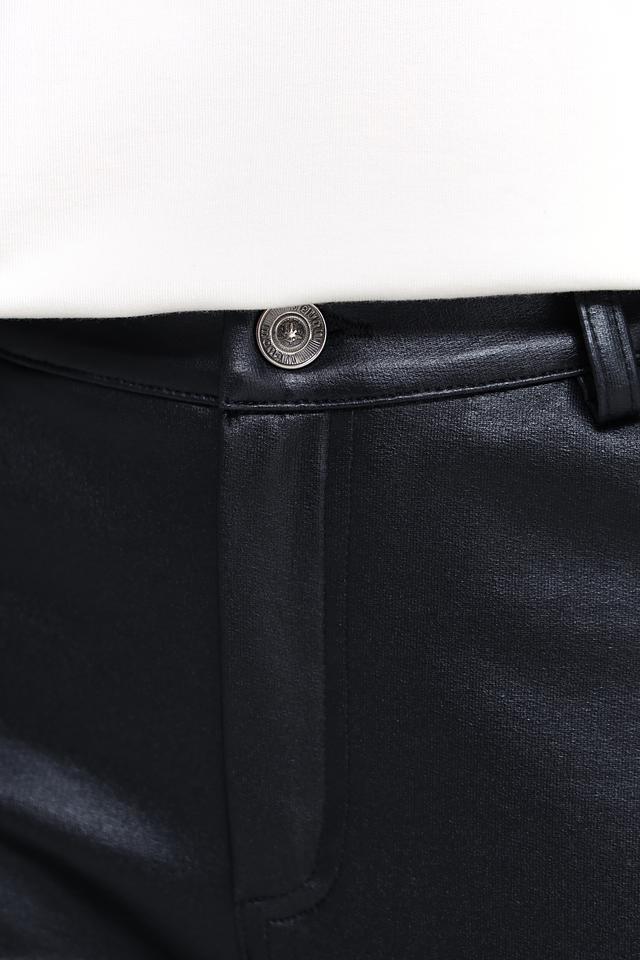 Брюки изготовлены из высококачественной экокожи, которая выглядит роскошно и при этом не требует сложного ухода. Состав ткани включает 95% хлопка и 5% эластана, что обеспечивает комфорт при носке и хорошую посадку по фигуре.