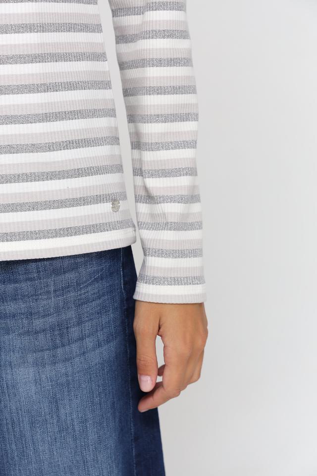 Женская футболка Monari серого цвета с полоской – это стильная и комфортная модель с длинным рукавом и округлым вырезом. Изготовлена из мягкого трикотажа с добавлением вискозы и эластана, обеспечивающего удобную посадку. Состав: полиэстер 62%, вискоза 30%, эластан 4%, метализ.полиэстер 4%