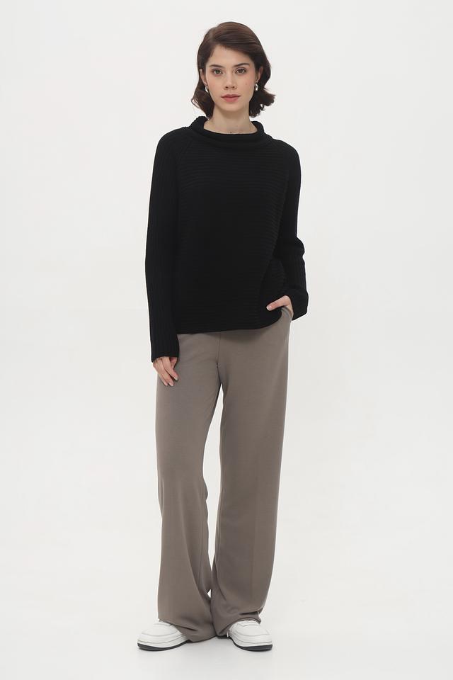 Пуловер имеет удобный воротник-стойку, который не только добавляет элегантности, но и защищает от холода. Текстурная вязка придает изделию особый шарм и визуальный интерес. Свободный крой обеспечивает комфорт и свободу движений.