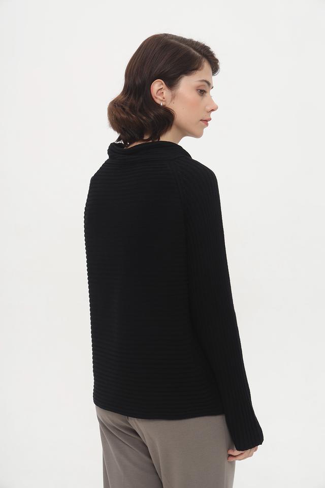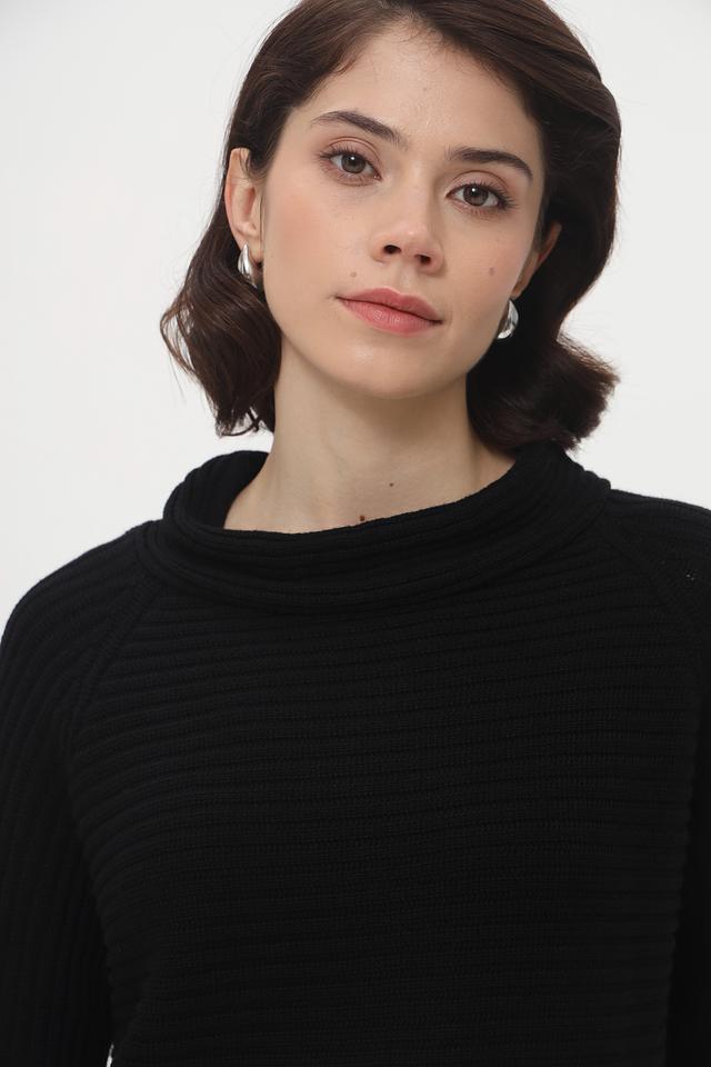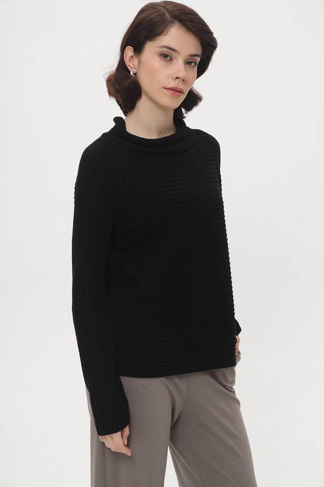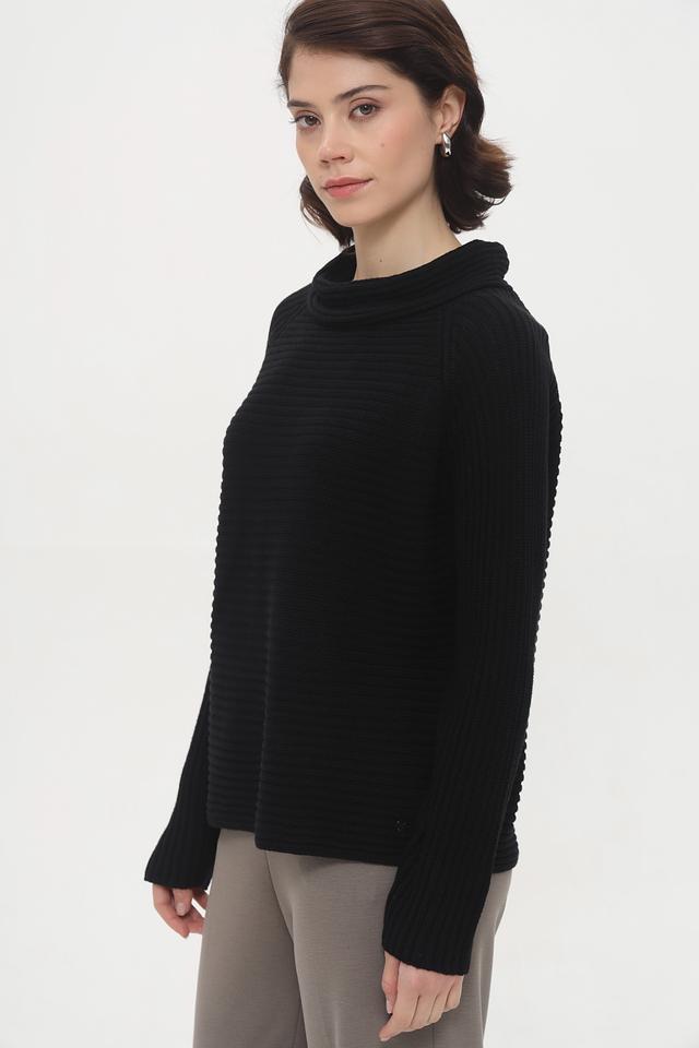 Чёрный пуловер Monari с воротником-стойкой выполнен из мягкого трикотажа. Модель имеет свободный крой и текстурную вязку, что делает её универсальным дополнением к базовому гардеробу. Состав: хлопок 50%, полиакрил 50%