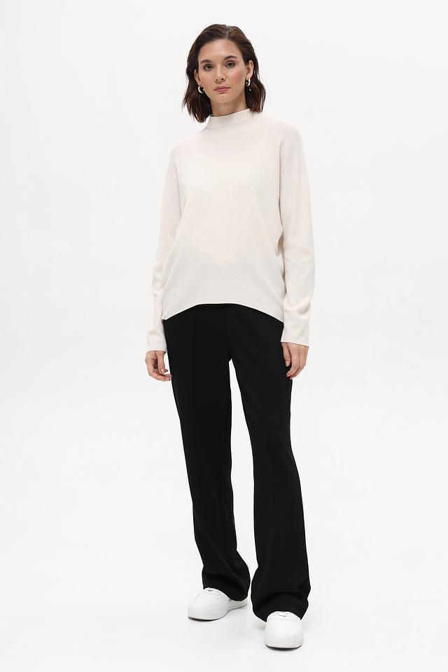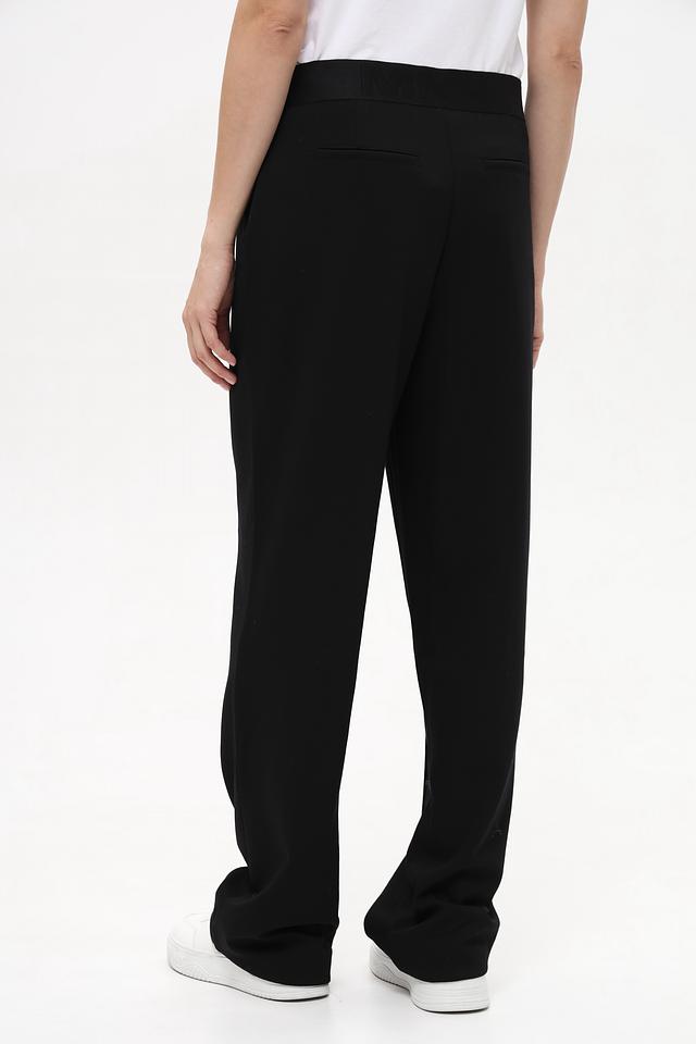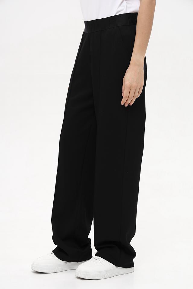 Брюки имеют прямой крой, который визуально вытягивает силуэт и обеспечивает комфорт при носке. Эластичный пояс обеспечивает идеальную посадку по фигуре, а также дополнительный комфорт.