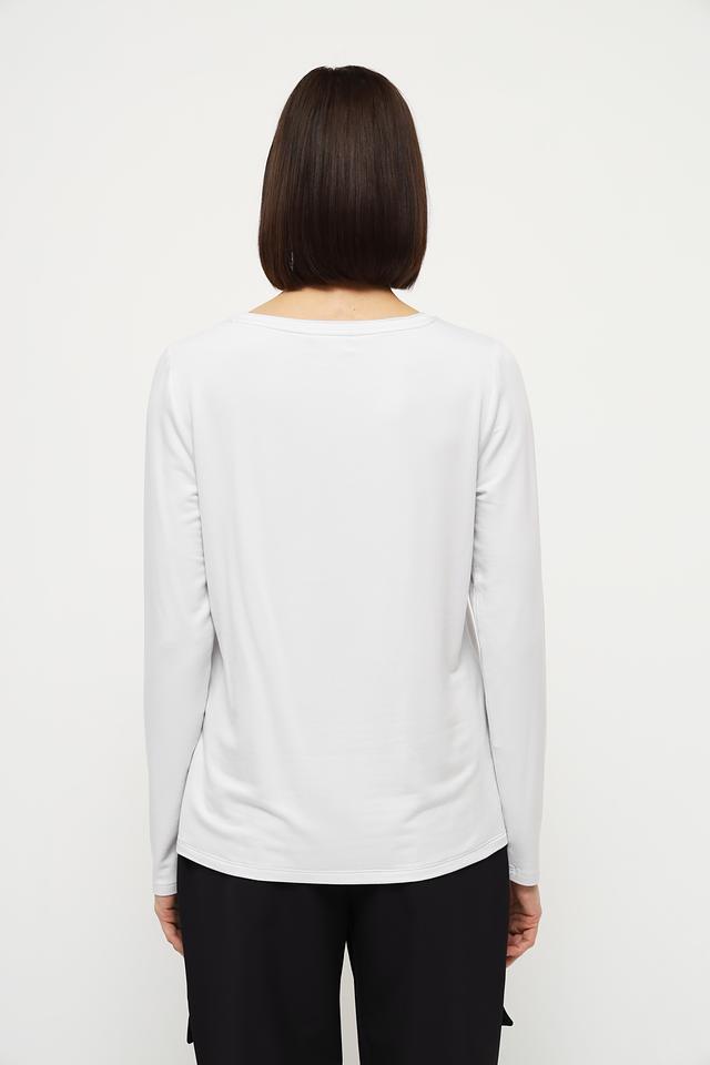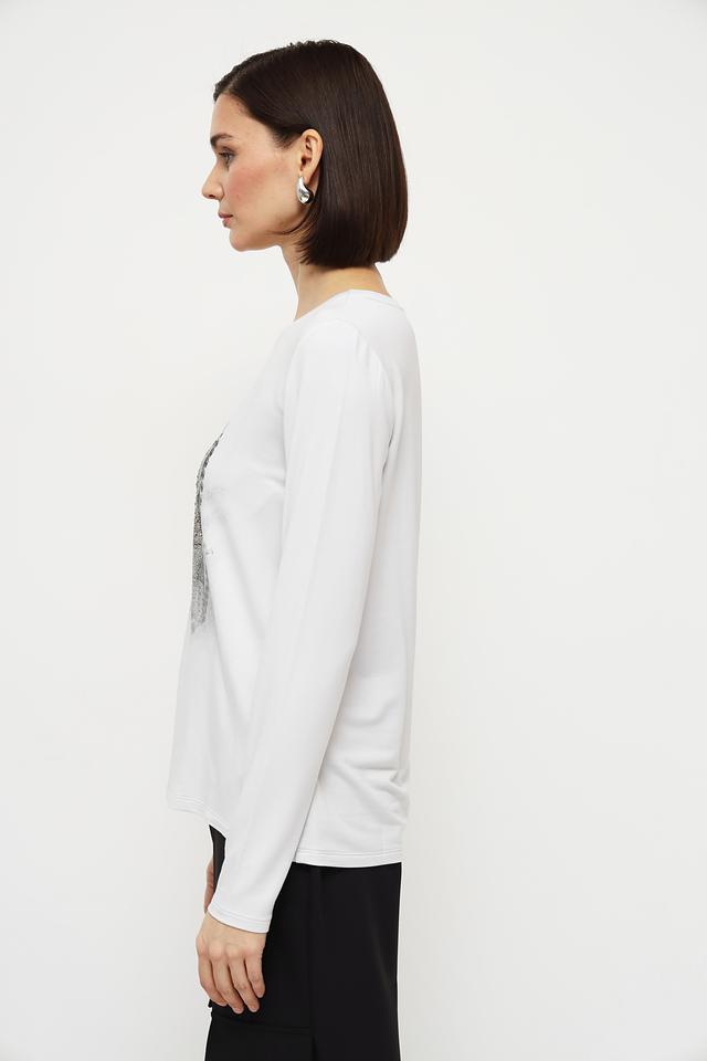 Белый лонгслив Monari с оригинальным принтом сумки. Изготовлен из мягкой и приятной к телу ткани на основе вискозы, модала и эластана. Состав: вискоза 45%, модал 45%, эластан 10%