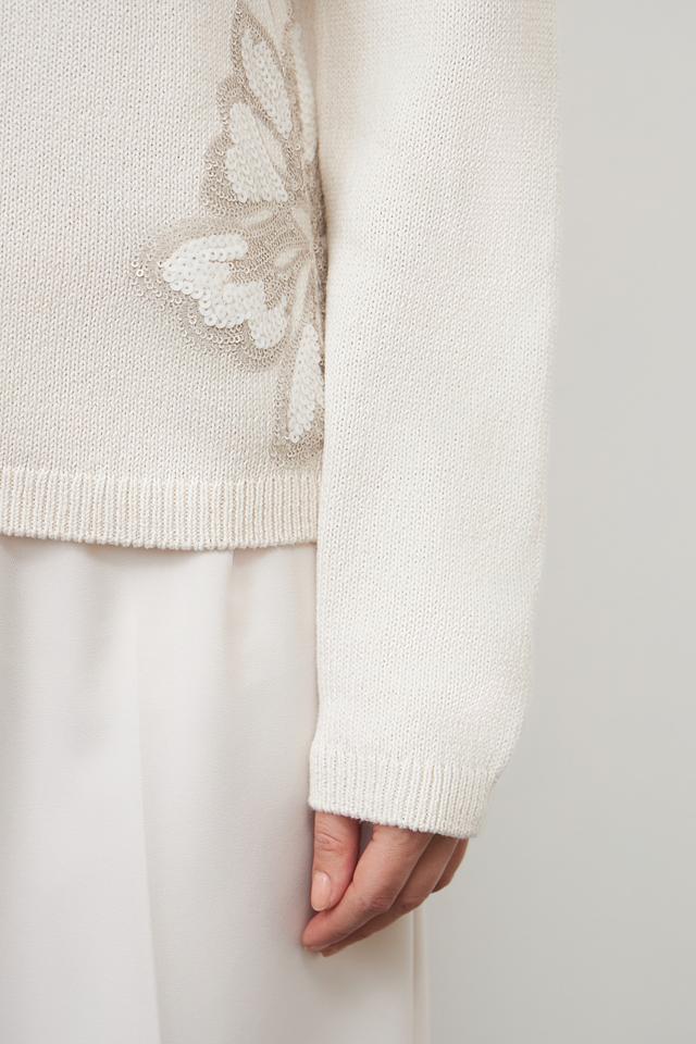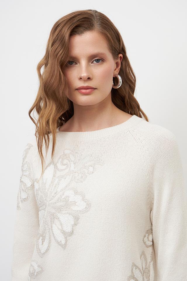 Пуловер изготовлен из высококачественного 100% хлопка, что обеспечивает комфорт и воздухопроницаемость. Текстура ткани приятна на ощупь и не вызывает раздражения кожи. Цветочный принт добавляет образу женственности и романтичности.