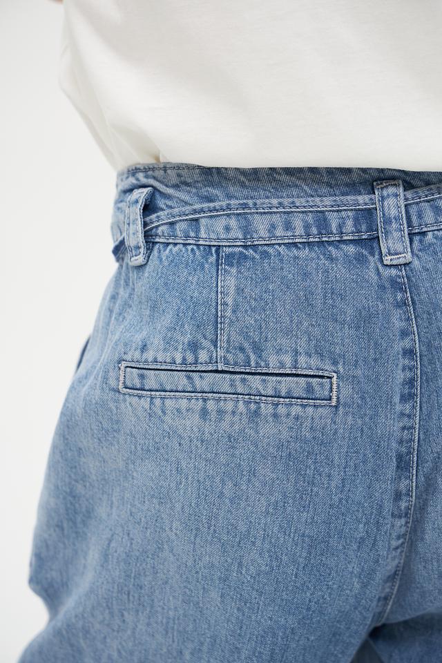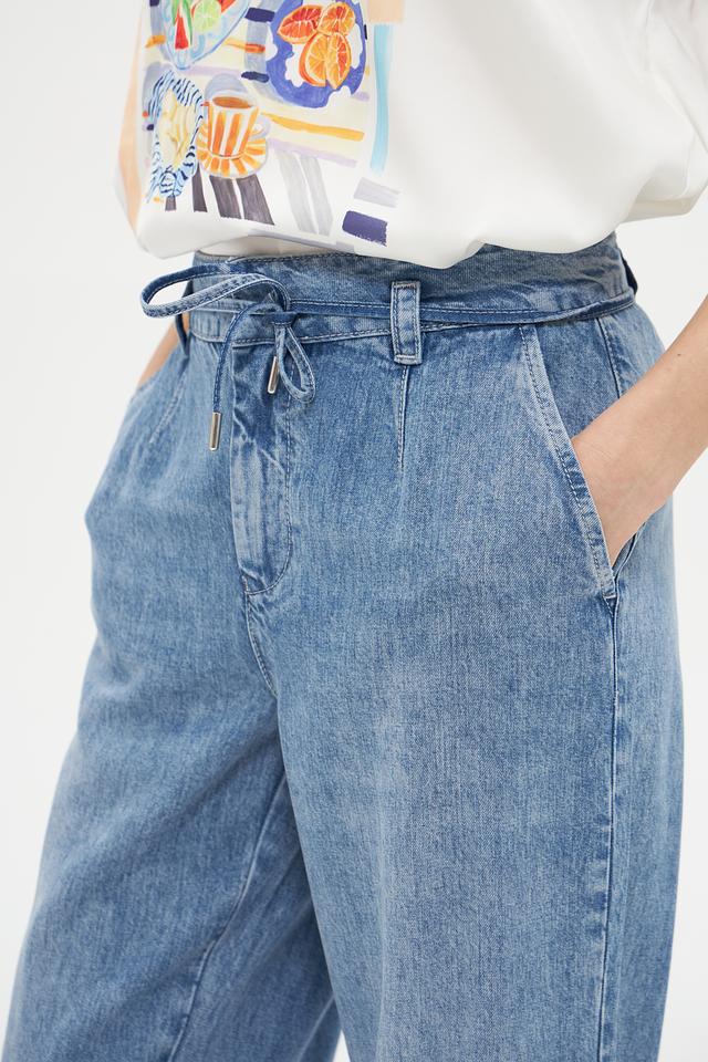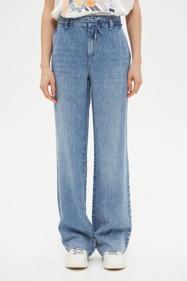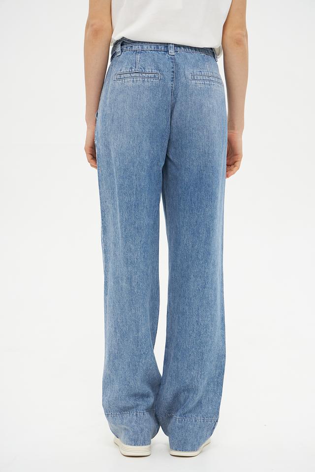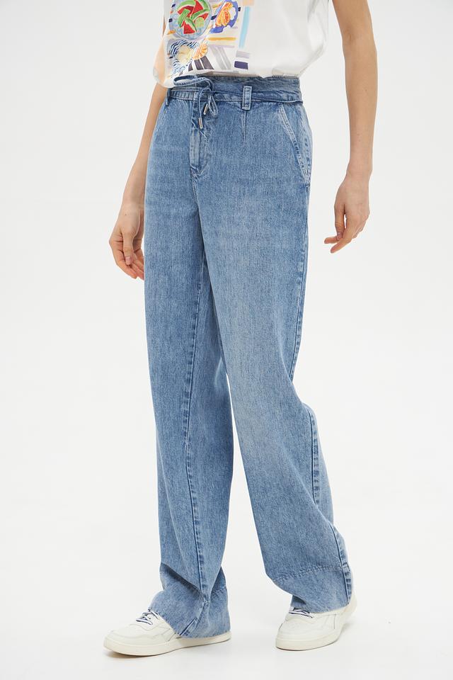 Особенностью данной модели являются защипы и пояс на завязках, которые добавляют оригинальности и позволяют регулировать посадку по фигуре. Джинсы изготовлены из 100% лиоцела, что гарантирует их экологичность и долговечность.