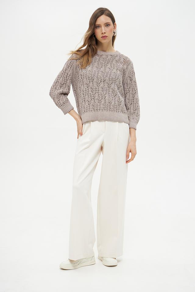 Пуловер имеет свободный крой, который обеспечивает свободу движений и комфорт в носке. Округлый вырез горловины и рукава три четверти придают модели изысканность и универсальность.