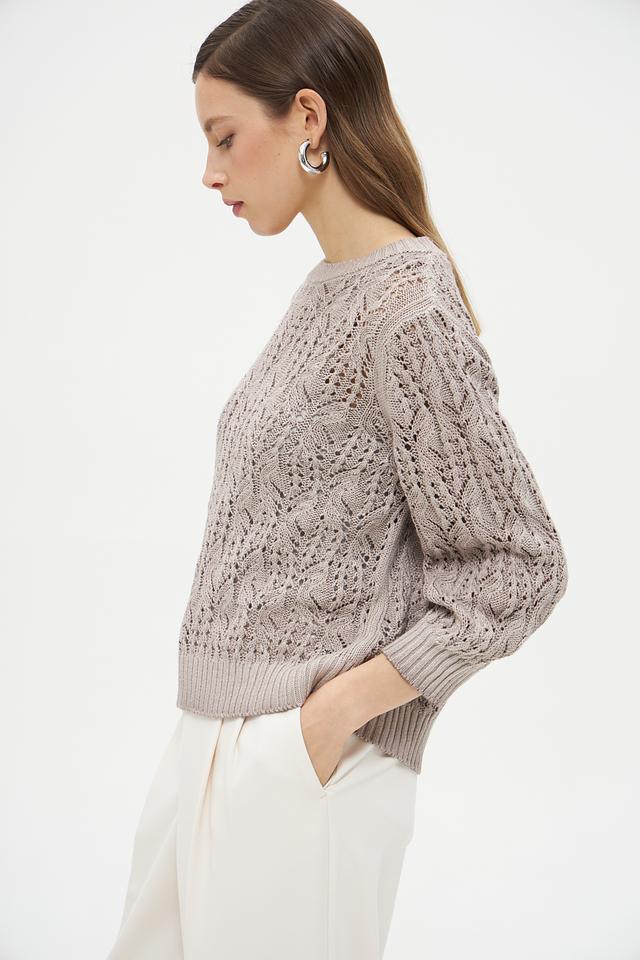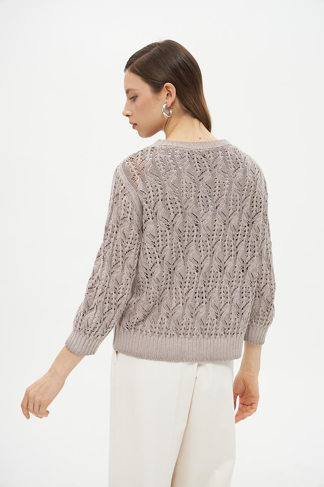 Особенностью данного пуловера является его ажурный узор, который придает ему легкость и воздушность. Пуловер изготовлен из высококачественного льна (63%) и хлопка (37%), что обеспечивает приятные тактильные ощущения и хорошую воздухопроницаемость.