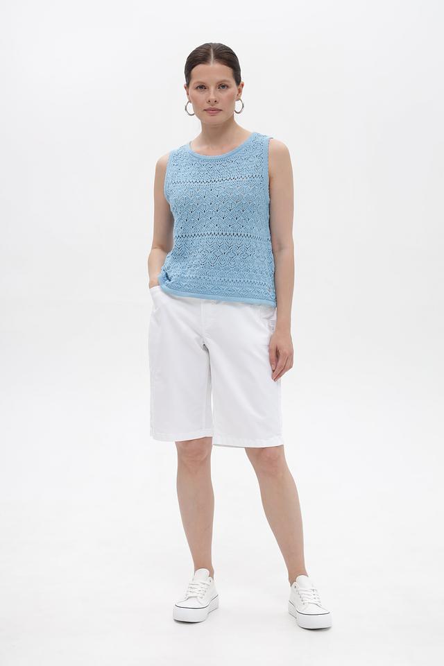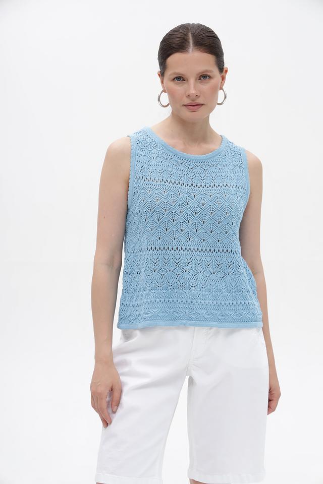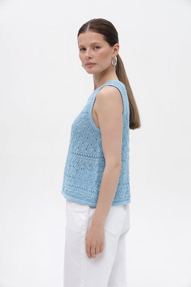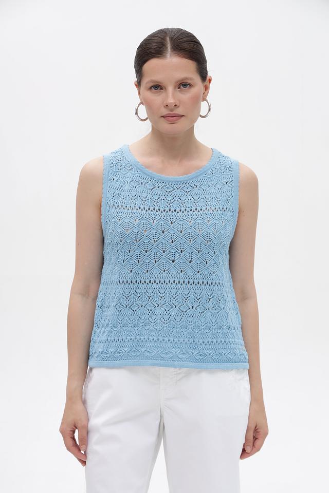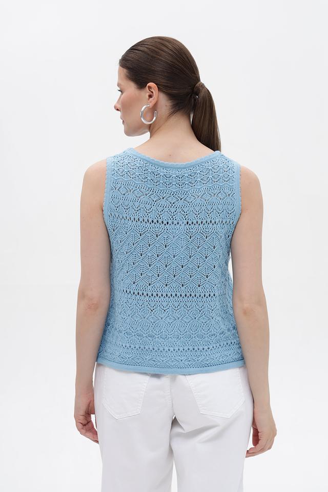 Голубой топ Monari из 100% хлопка с ажурным узором. Легкая и дышащая модель без рукавов идеально подходит для летнего гардероба. Изготовлен из натурального хлопка. Состав: хлопок 100%