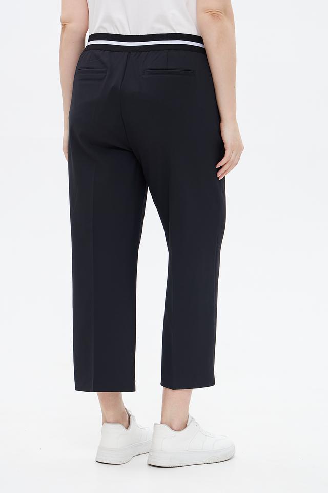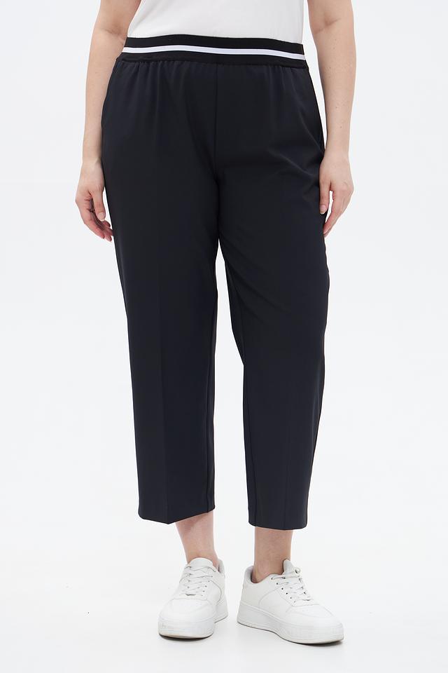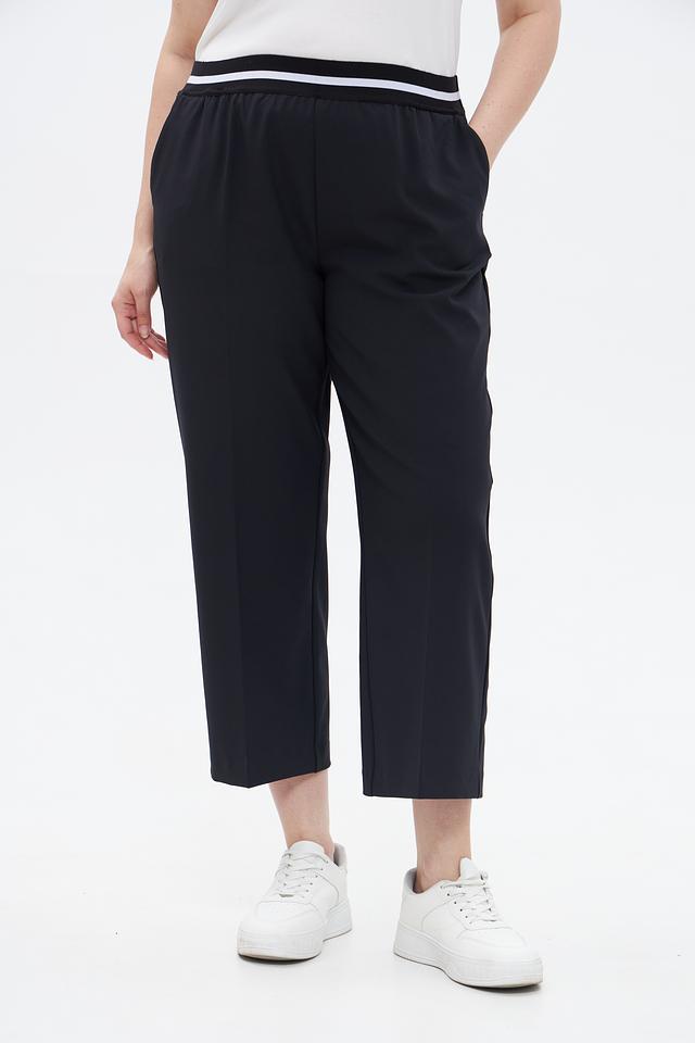 Чёрные брюки-кюлоты от Monari — стильное и комфортное решение для создания современного образа. Модель выполнена из гладкой ткани с эластаном, имеет удобный эластичный пояс с контрастной полоской и слегка укороченный крой. Состав: полиэстер 89%, эластан 11%