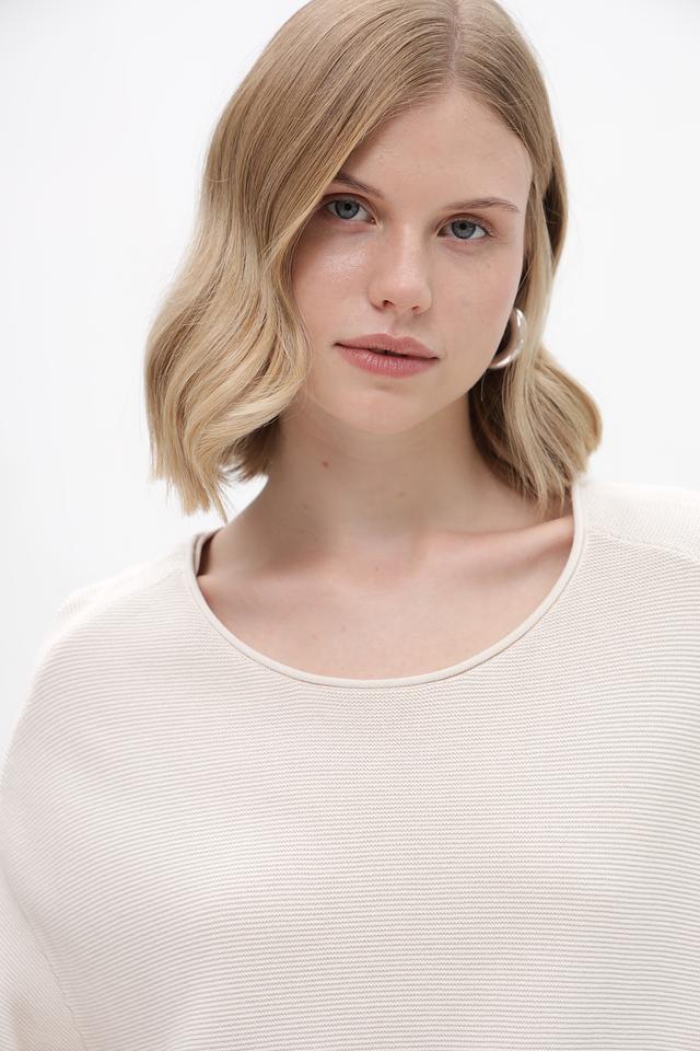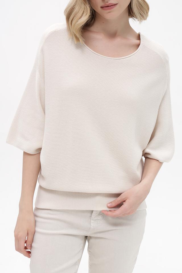 Бежевый пуловер Monari из 100% хлопка с рукавом 3/4. Модель выполнена фактурной вязкой и имеет свободный крой. Идеальный выбор для создания комфортных и стильных образов. Состав: хлопок 100%