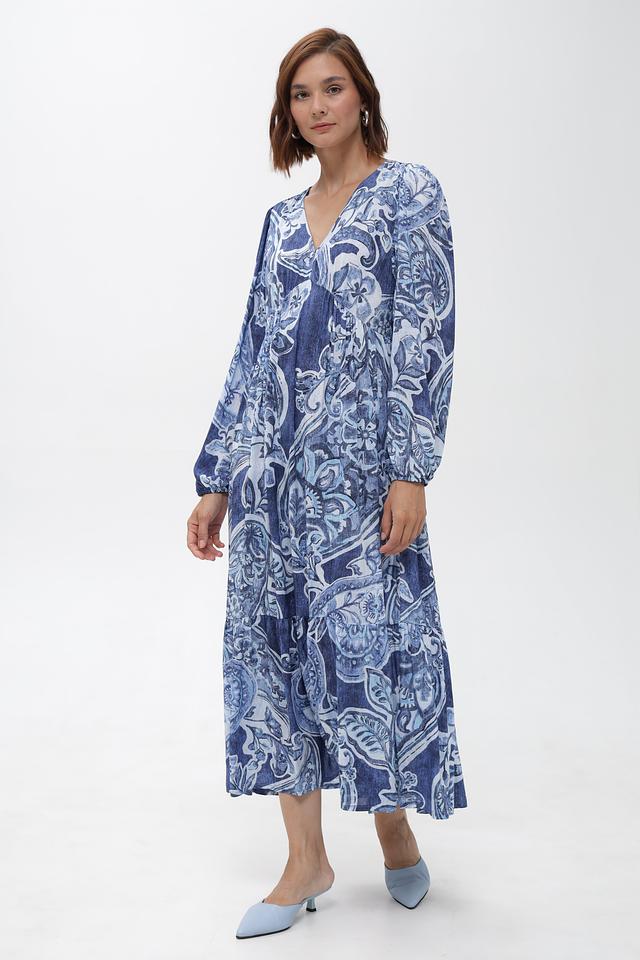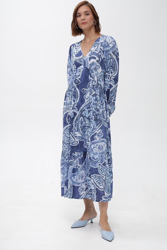 Синее платье от Monari с изысканным цветочным принтом в стиле пейсли. Модель выполнена из 100% вискозы, обеспечивающей комфорт и приятные ощущения. Идеальный выбор для создания элегантного и женственного образа. Состав: вискоза 100%