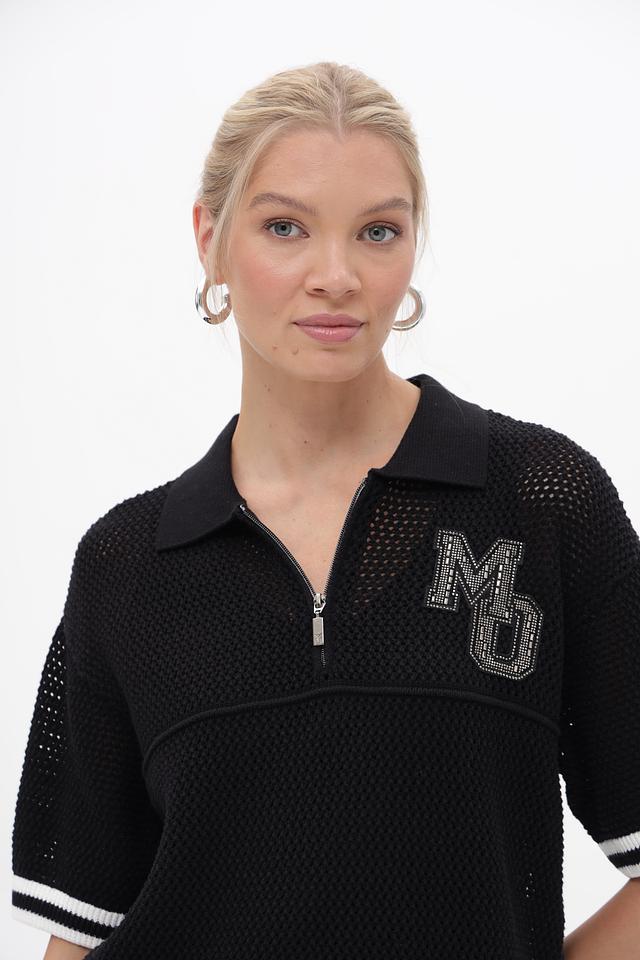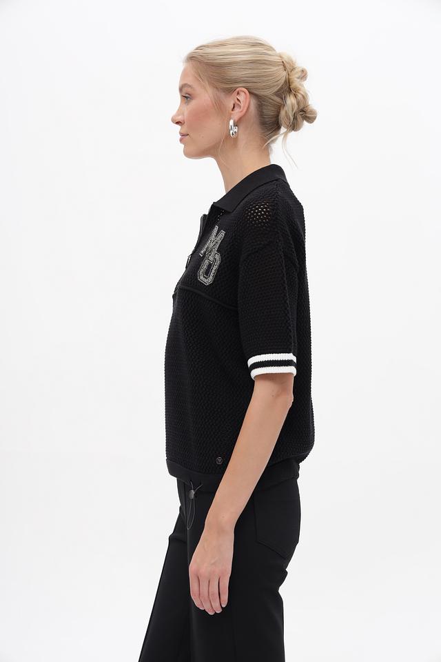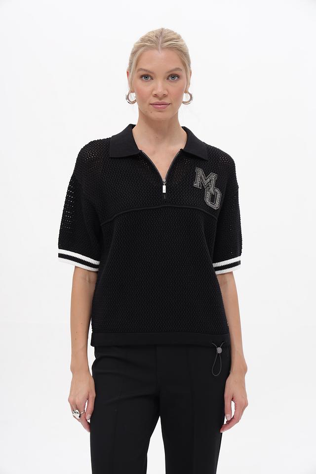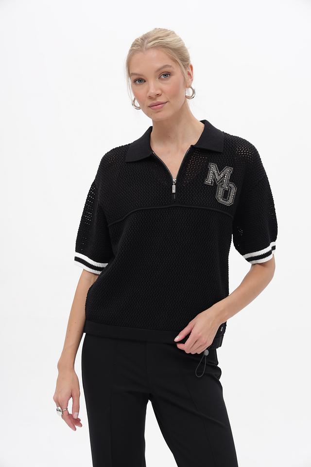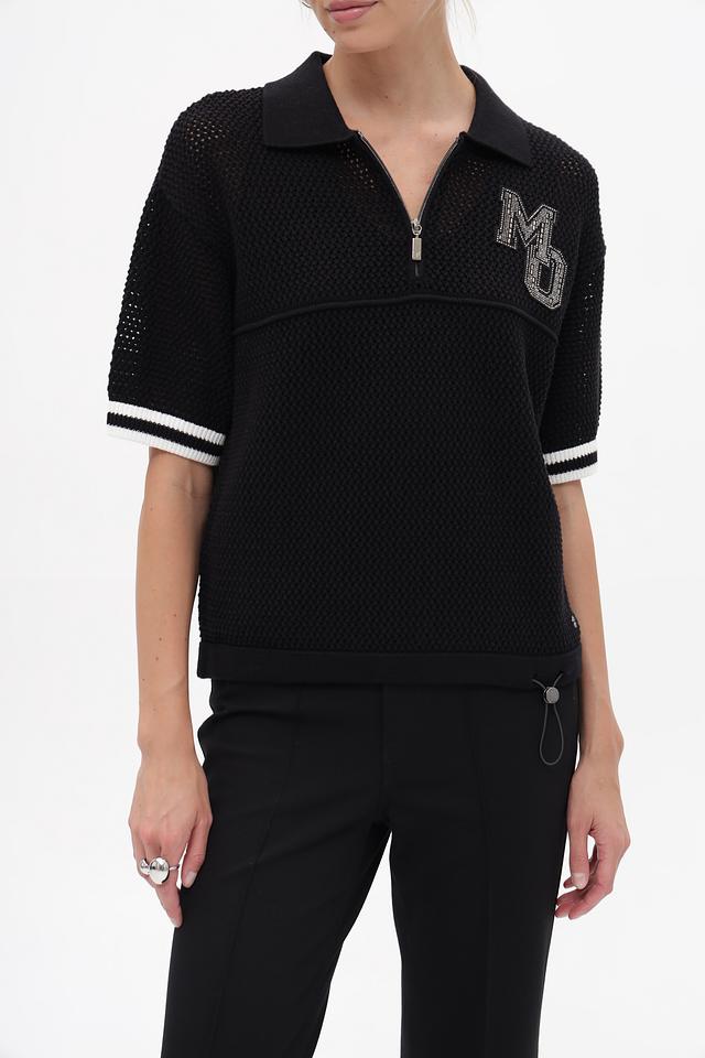 Чёрный пуловер Monari из 100% хлопка с короткими рукавами и оригинальным дизайном. Модель дополнена застёжкой-молнией и декоративной вышивкой с логотипом бренда. Состав: хлопок 100%
