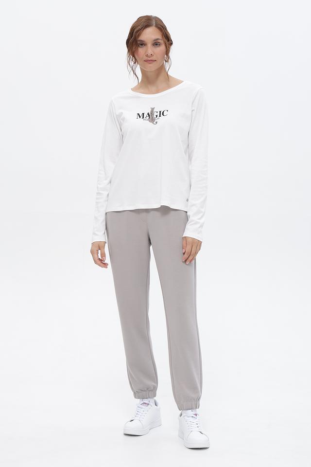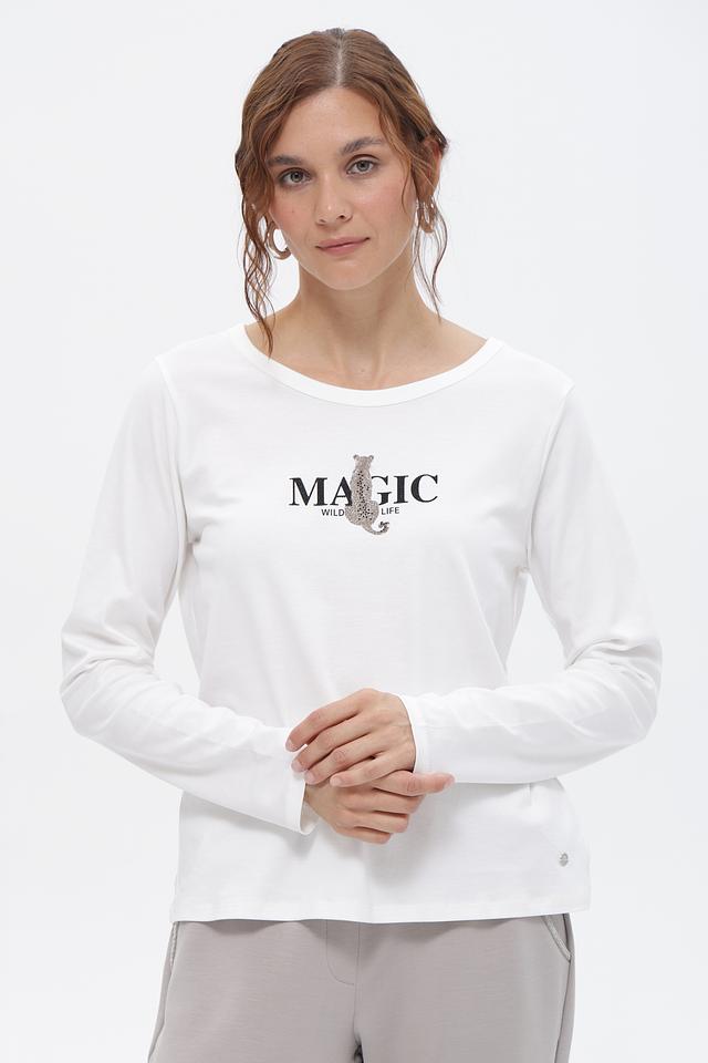 Белая футболка Monari с длинным рукавом и принтом “MAGIC”. Изготовлена из 100% хлопка, обеспечивающего комфорт и воздухопроницаемость. Отличный выбор для создания повседневных образов. Состав: хлопок 100%