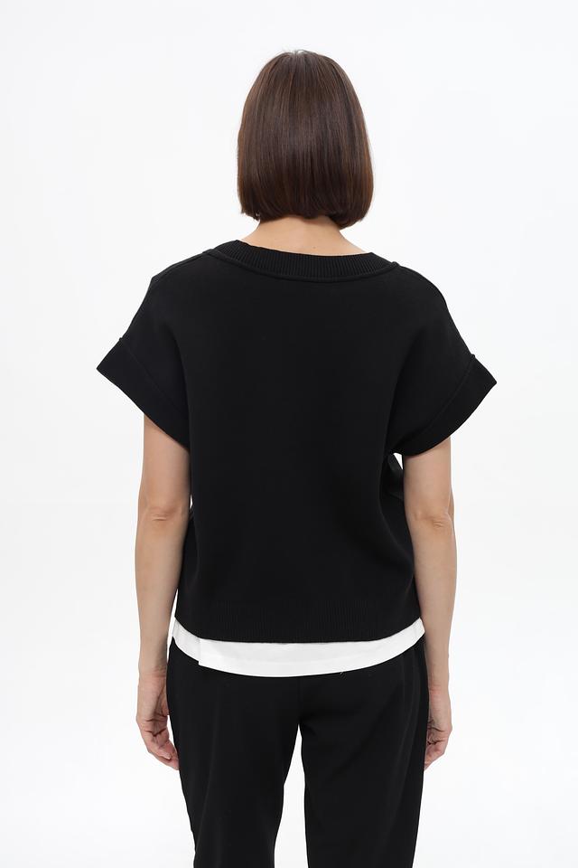 Чёрный жилет Monari из хлопкового трикотажа с V-образным вырезом и накладным карманом. Состав: 50% хлопок, 50% полиакрил. Состав: хлопок 50%, полиакрил 50%