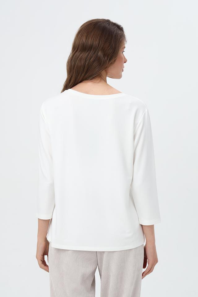 Модель имеет прямой крой, что обеспечивает свободу движений и комфортную посадку по фигуре. Лонгслив с 3/4 рукавом, круглым вырезом горловины.