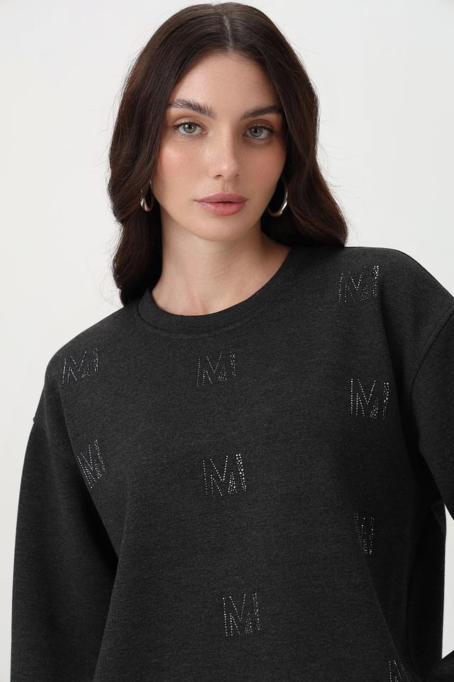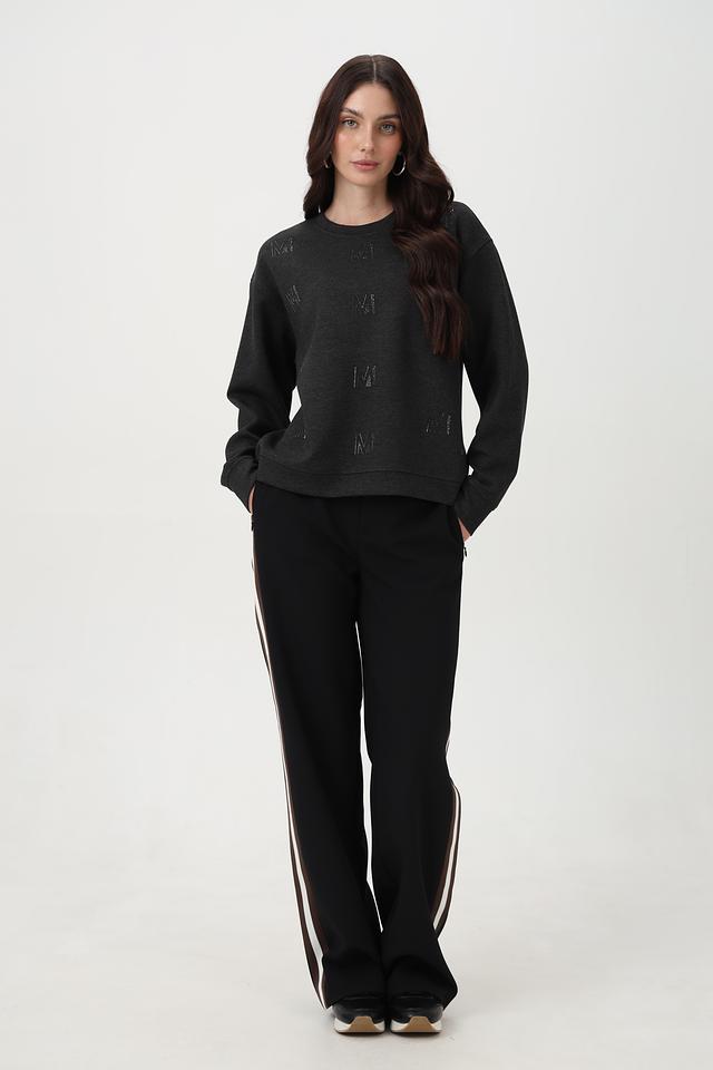Пуловер имеет круглый вырез, длинные рукава и свободный крой, обеспечивающий комфорт в носке. По всей поверхности изделия расположен декоративный логотип бренда, выполненный в черном цвете.