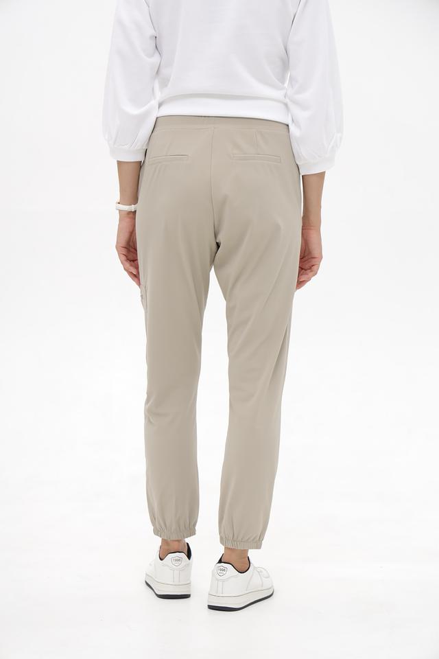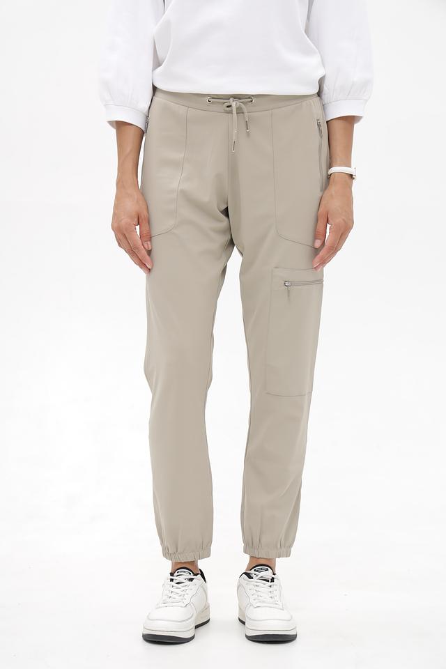 Брюки имеют зауженный к низу силуэт, эластичный пояс со шнуровкой для комфортной посадки и функциональные карманы. Сочетание полиэстера и эластана обеспечивает удобство в носке и сохранение формы изделия.