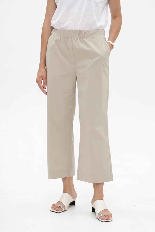 Кюлоты имеют прямой, слегка расклешенный крой, который обеспечивает свободу движений. Эластичный пояс гарантирует комфортную посадку по фигуре. Модель дополнена боковыми карманами, что делает ее функциональной и практичной.