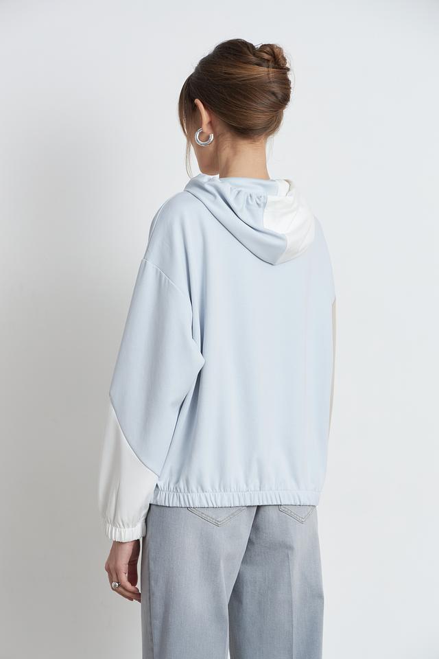Женский пуловер Monari светло-голубого цвета с капюшоном и оригинальным дизайном. Модель выполнена в блочном исполнении с элементами декора из сетки и имеет удобную посадку. Состав включает полиэстер, вискозу и эластан. Состав: полиэстер 55%, вискоза 38%, эластан 7%
