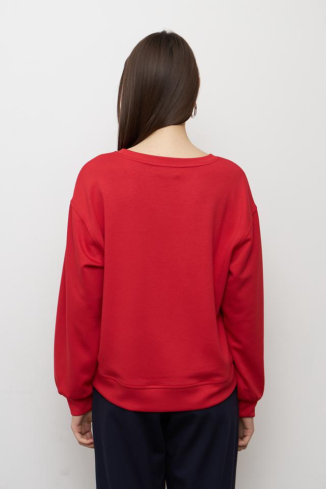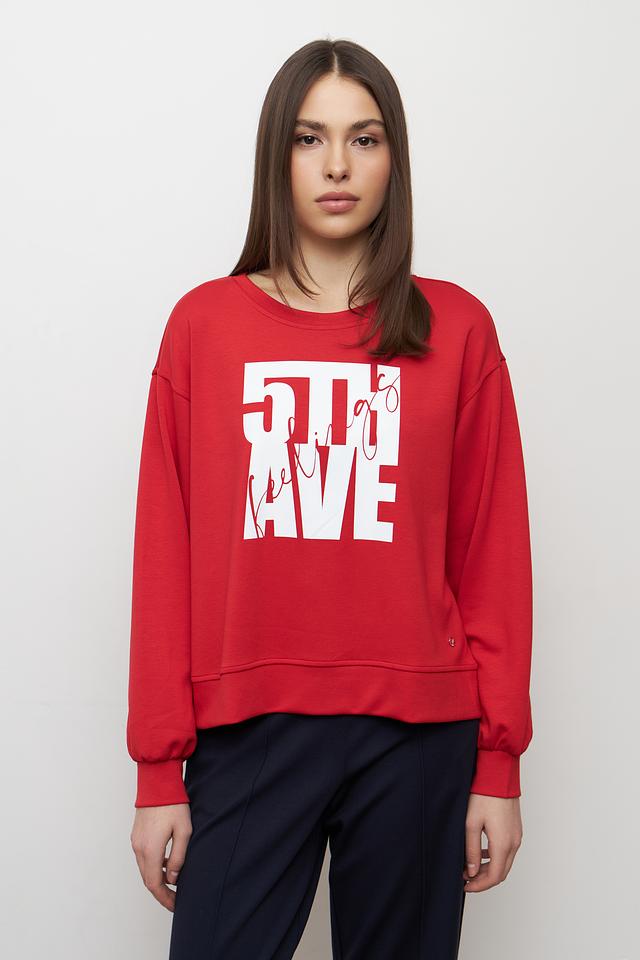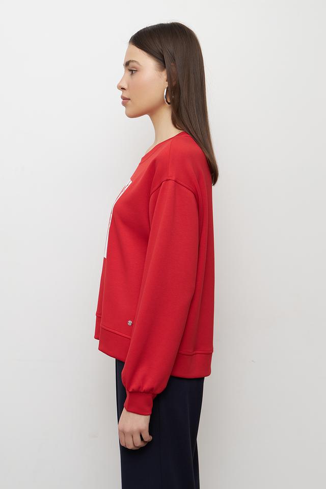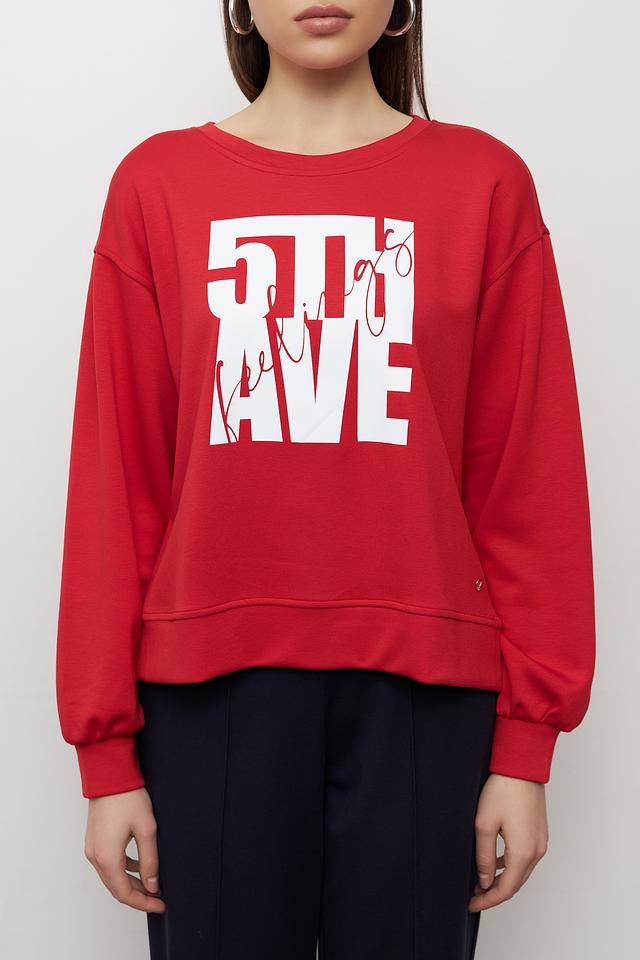 Красный пуловер Monari с ярким белым принтом "Feel the wave" станет стильным дополнением к вашему гардеробу. Модель свободного кроя с круглым вырезом и манжетами на рукавах выполнена из мягкого и приятного к телу трикотажа. Состав: вискоза 48%, полиэстер 47%, эластан 5%
